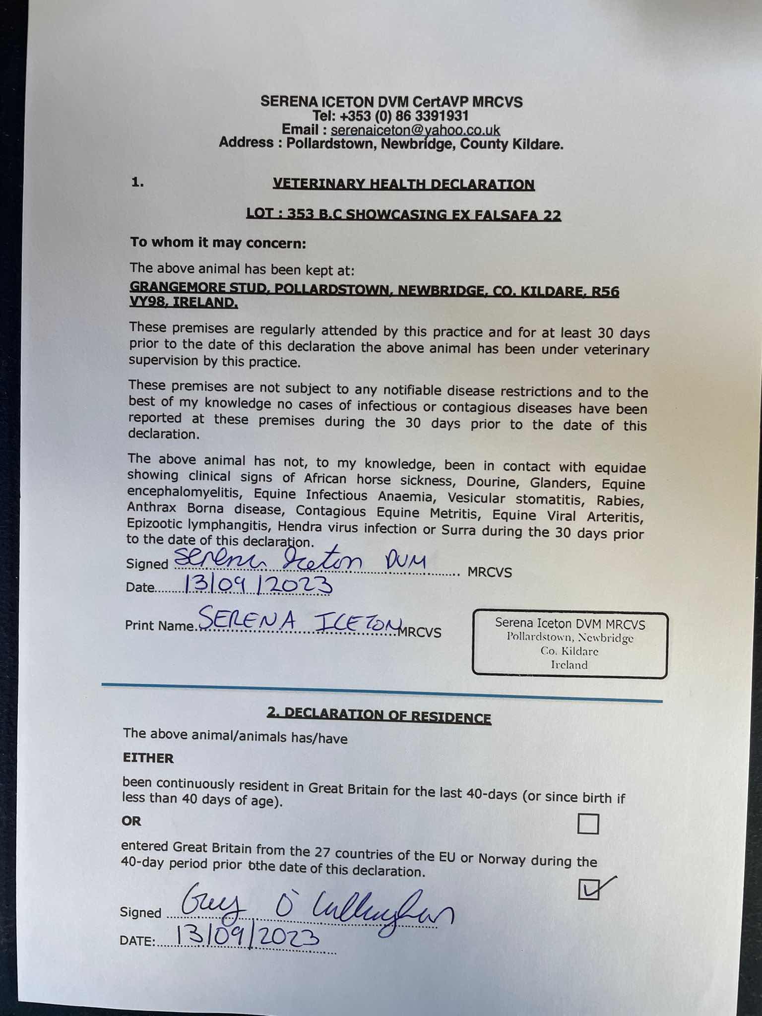 Consignor: Grangemore Stud, Ireland