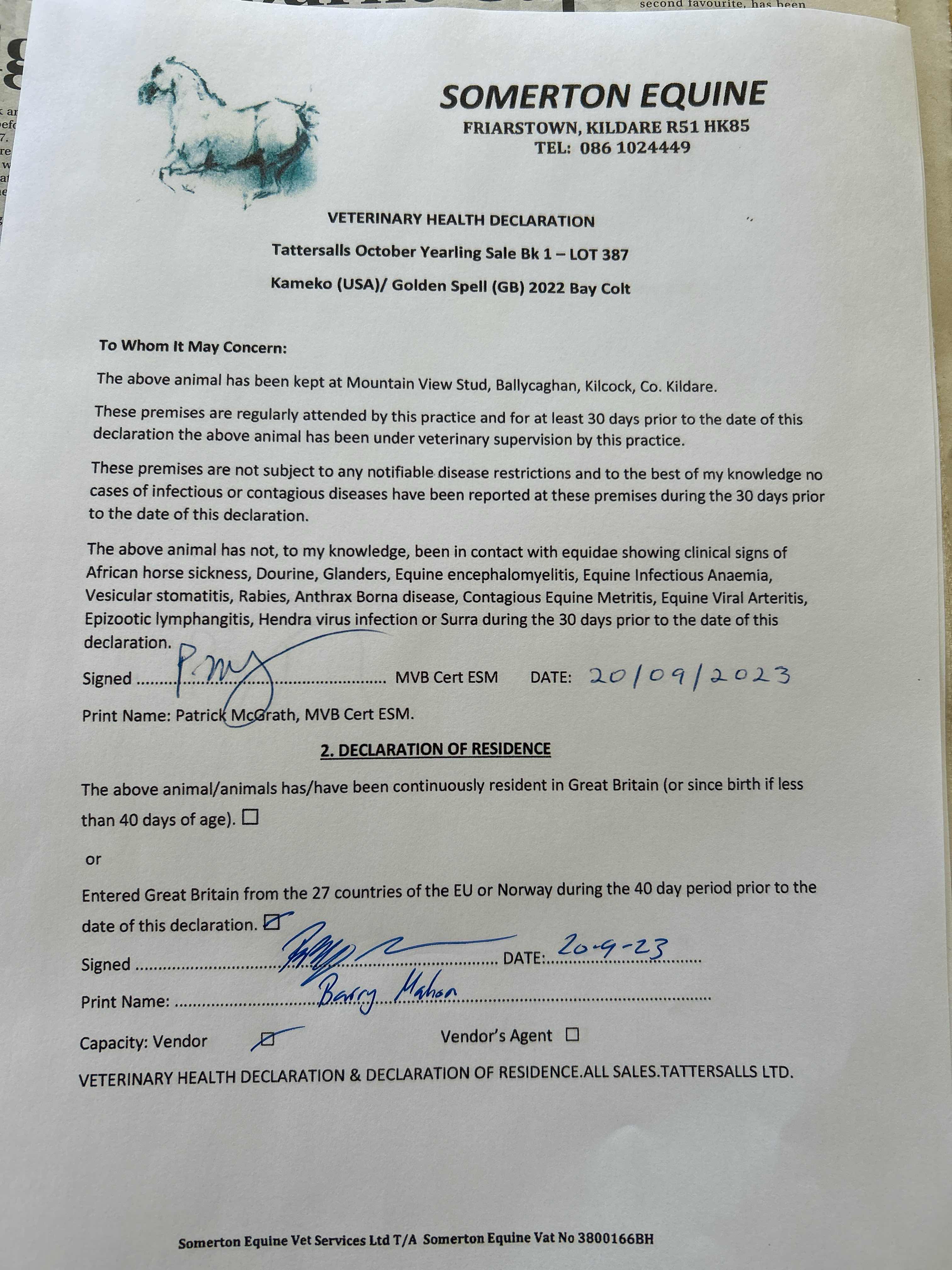 Consignor: Mountain View Stud, Ireland