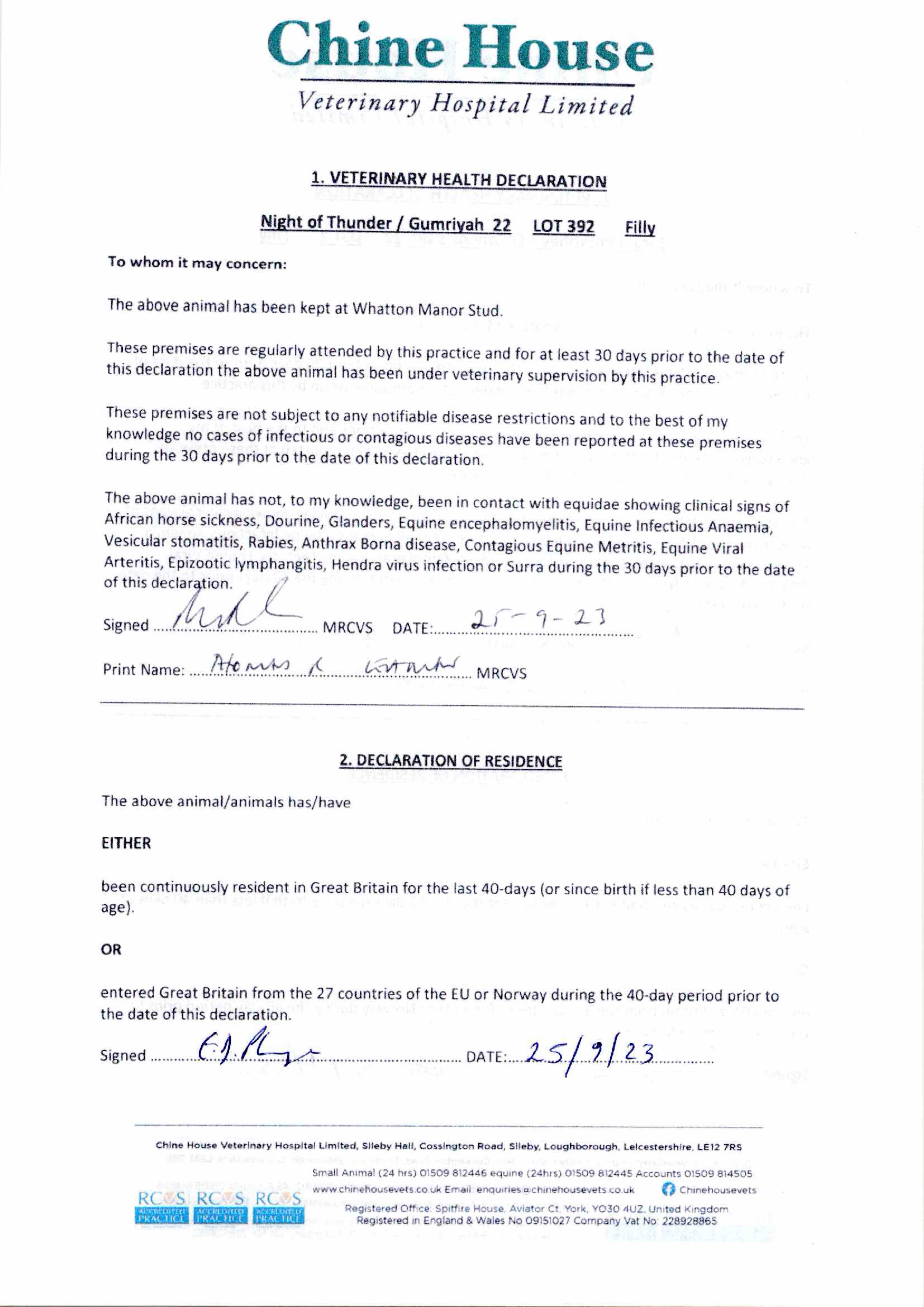Consignor: Whatton Manor Stud