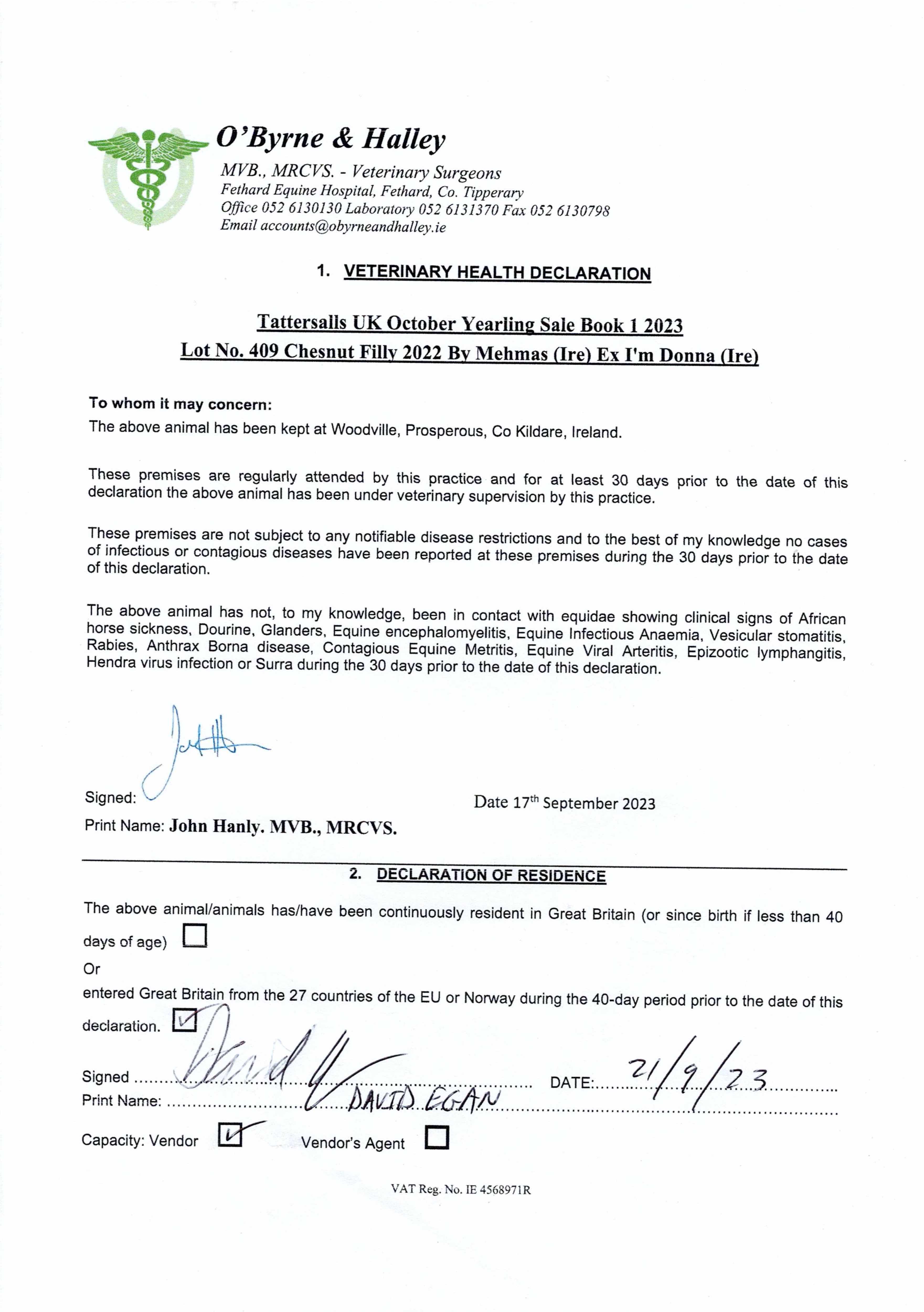 October Yearling Sale, Book 3 2024 lot 1377 F. by Time Test (GB) 2023, Corduff Stud, Ireland=>Vendor 11,000 gns