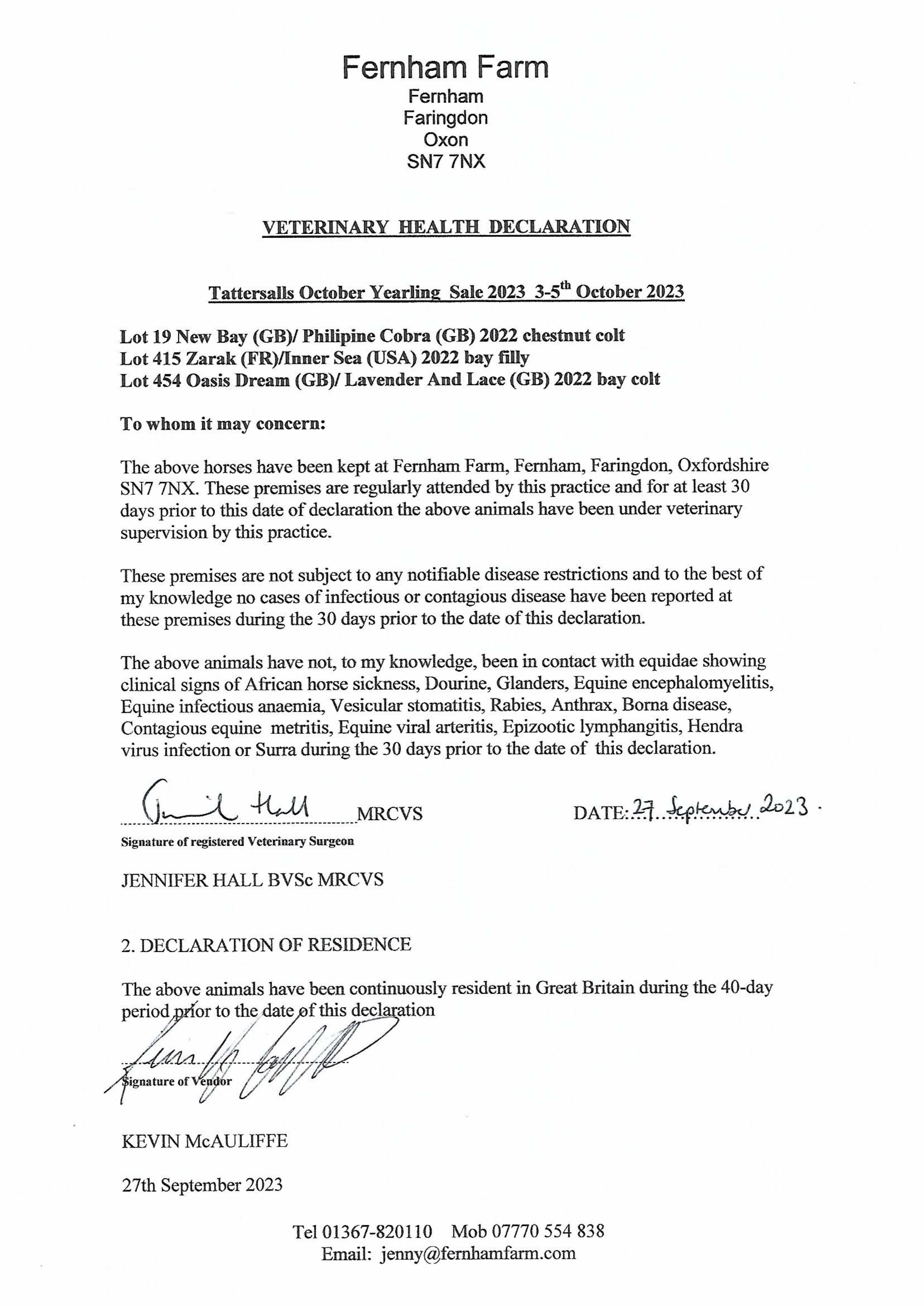 Consignor: Fernham Farm