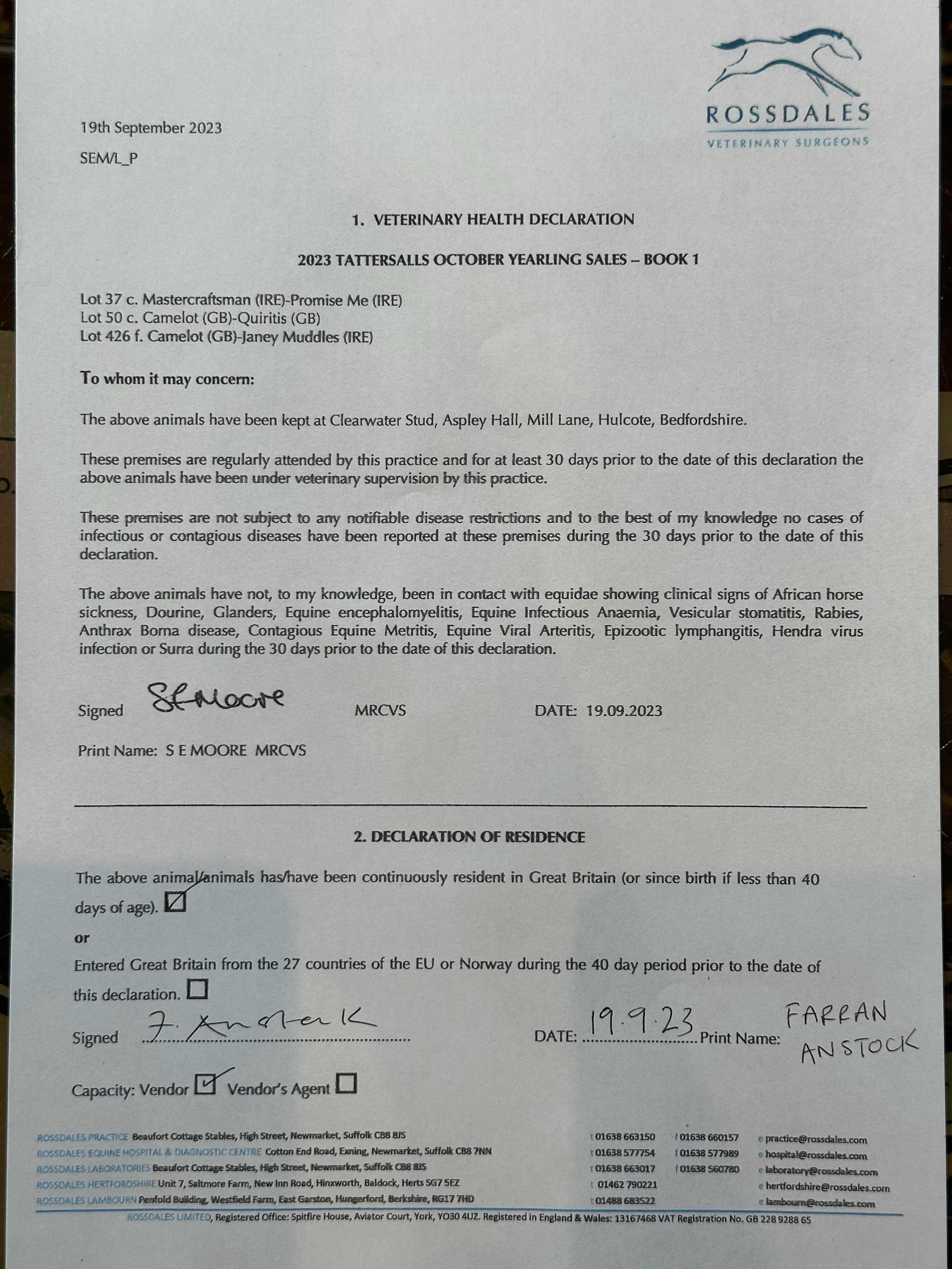 Consignor: Clearwater Stud