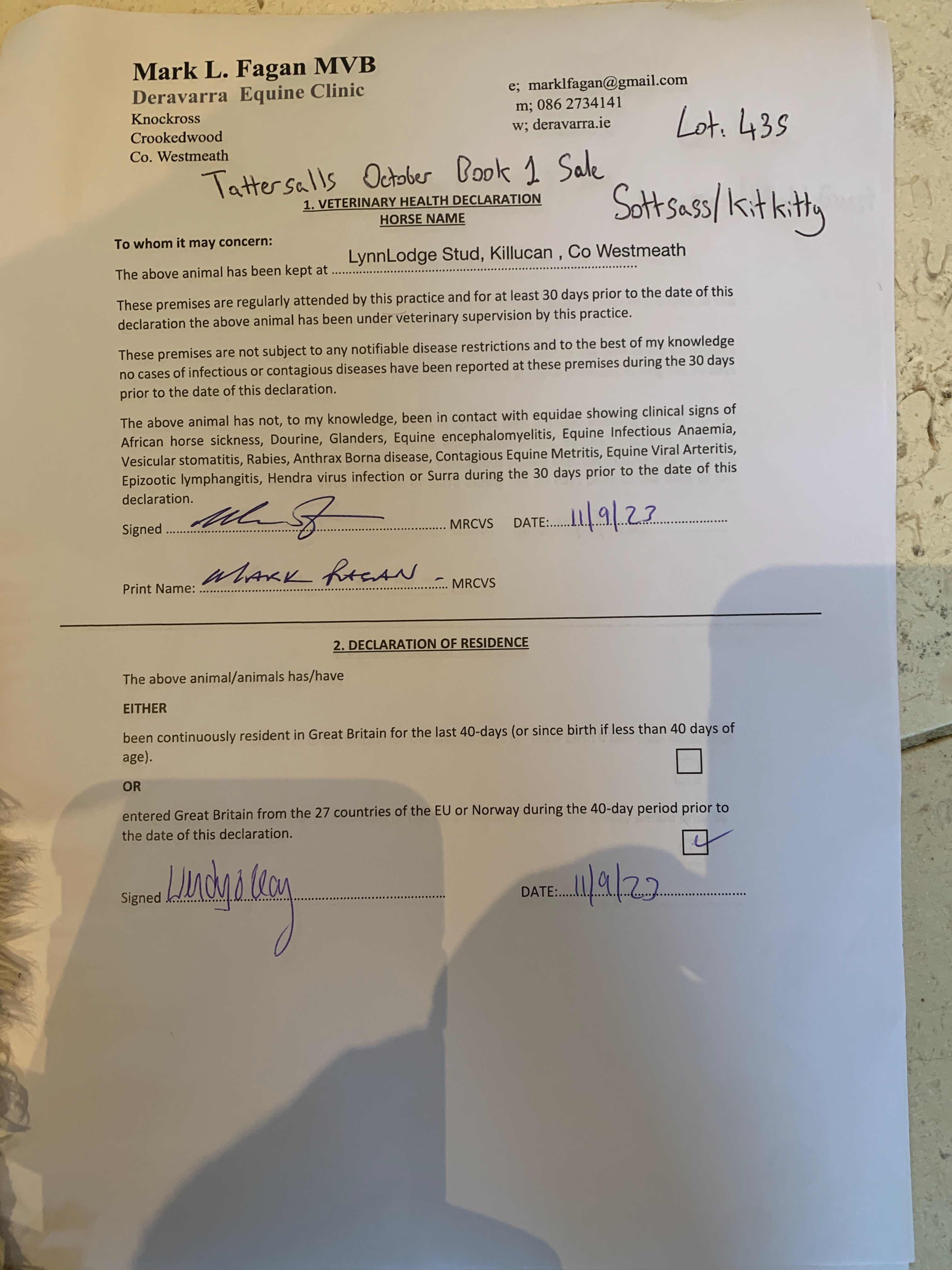 Consignor: Lynn Lodge Stud, Ireland
