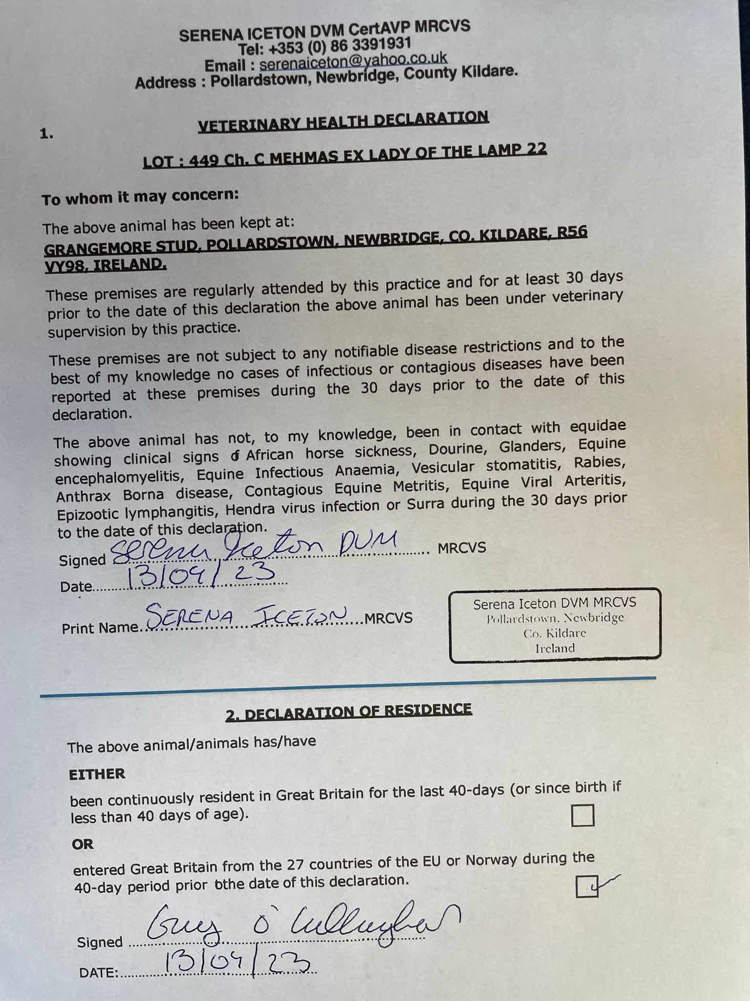 Consignor: Grangemore Stud, Ireland
