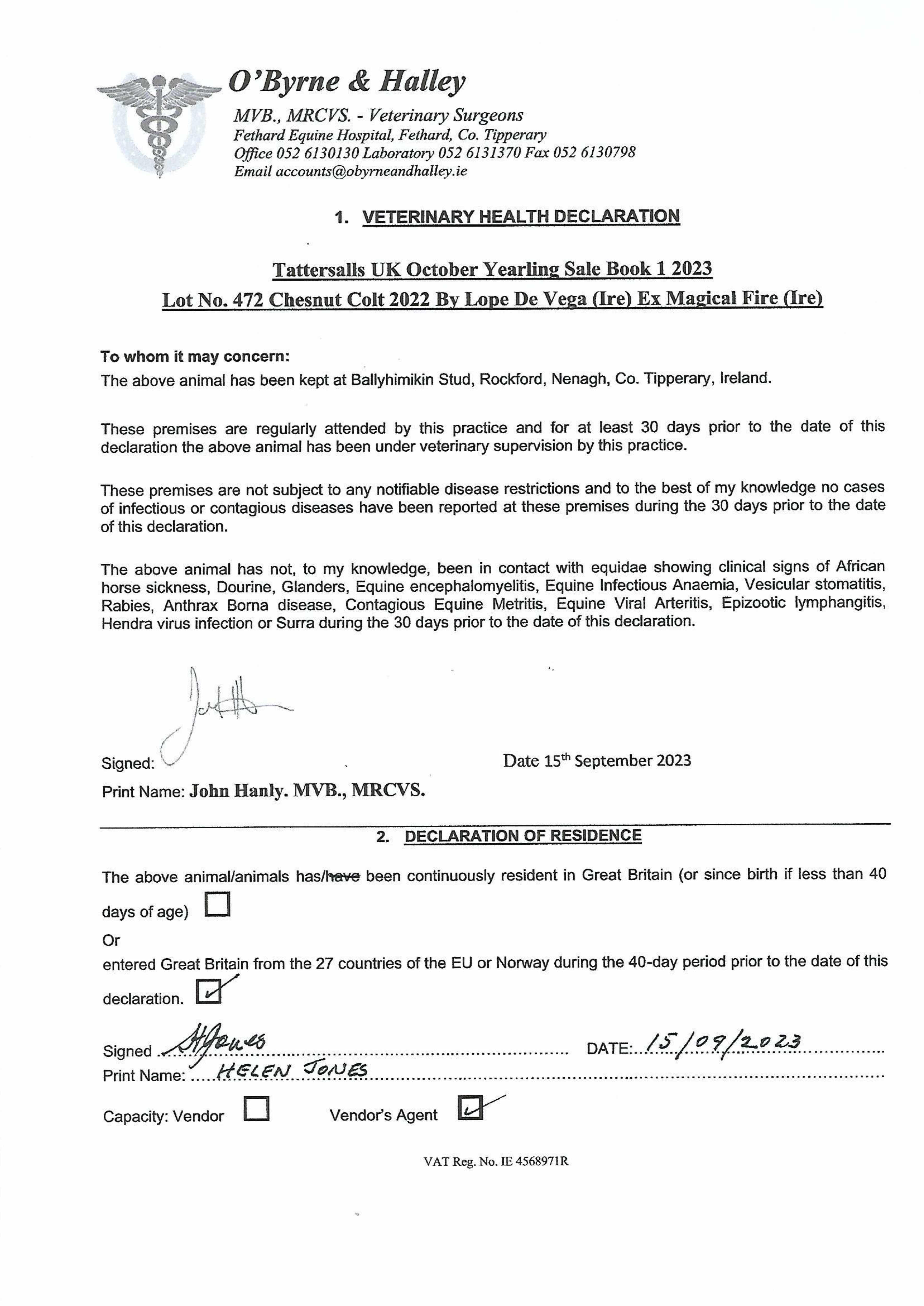 Consignor: Ballyhimikin Stud, Ireland