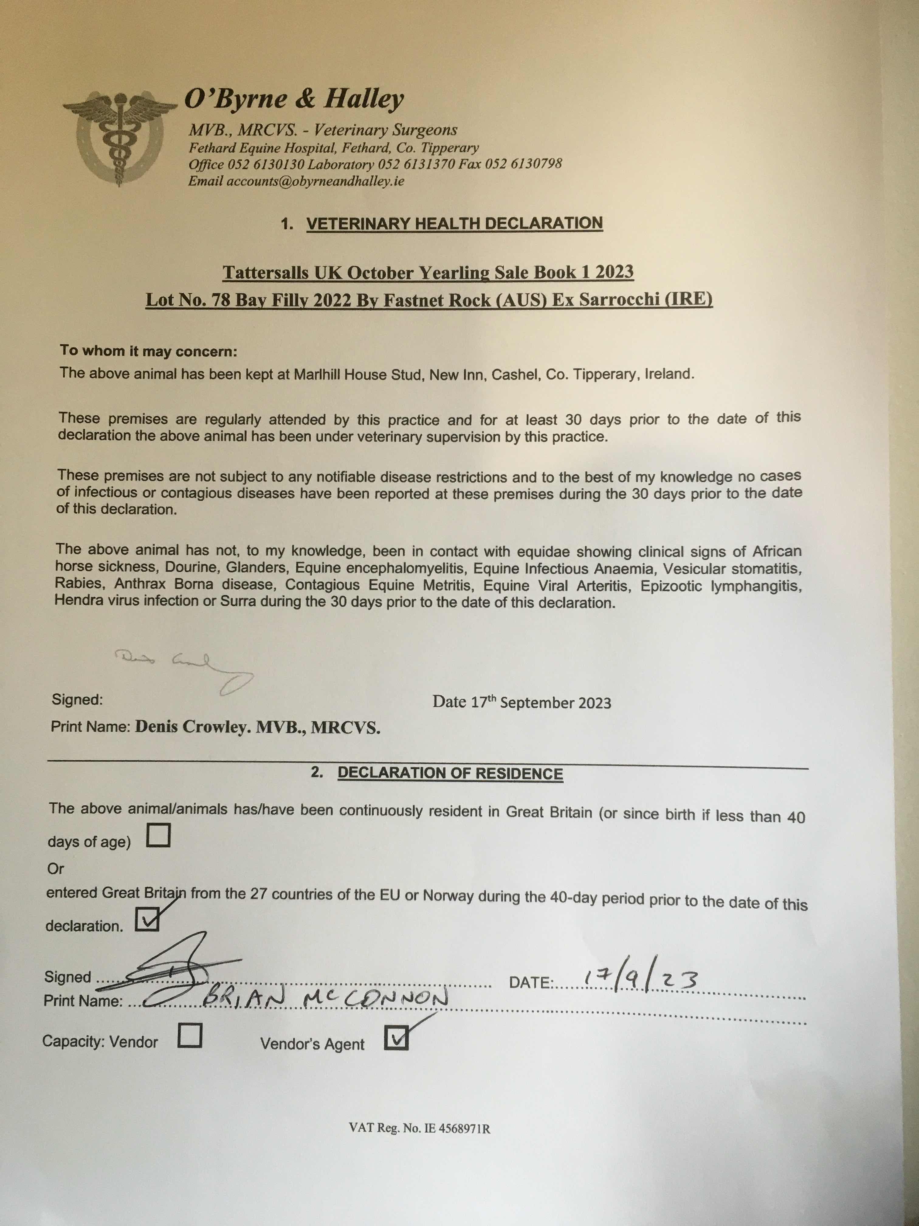 Consignor: Marlhill House Stud, Ireland