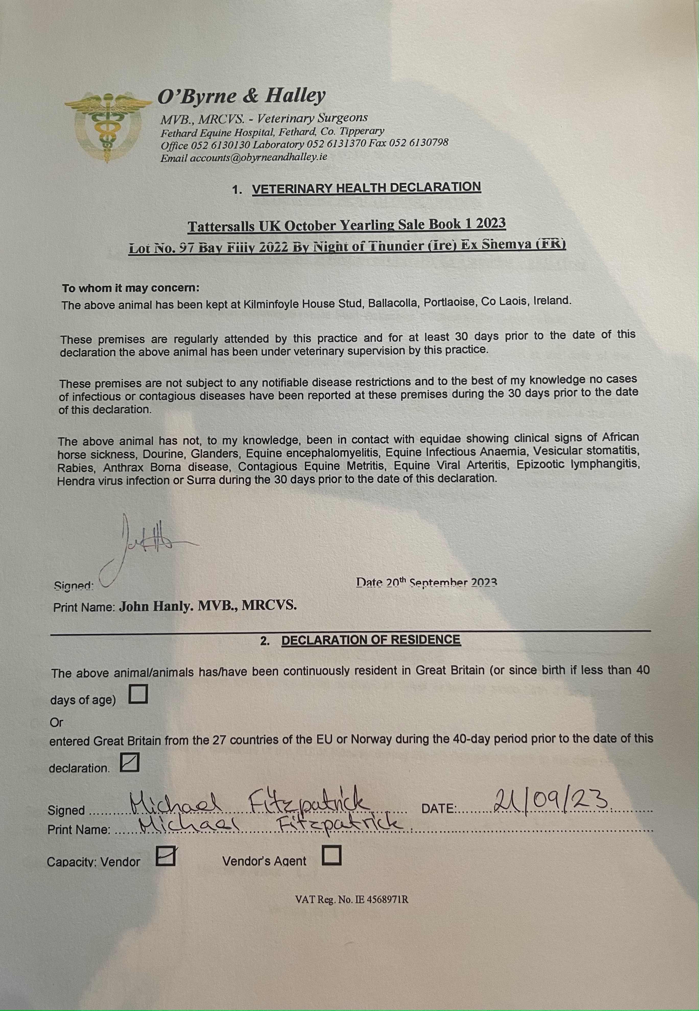 Consignor: Kilminfoyle House Stud, Ireland (Agent)