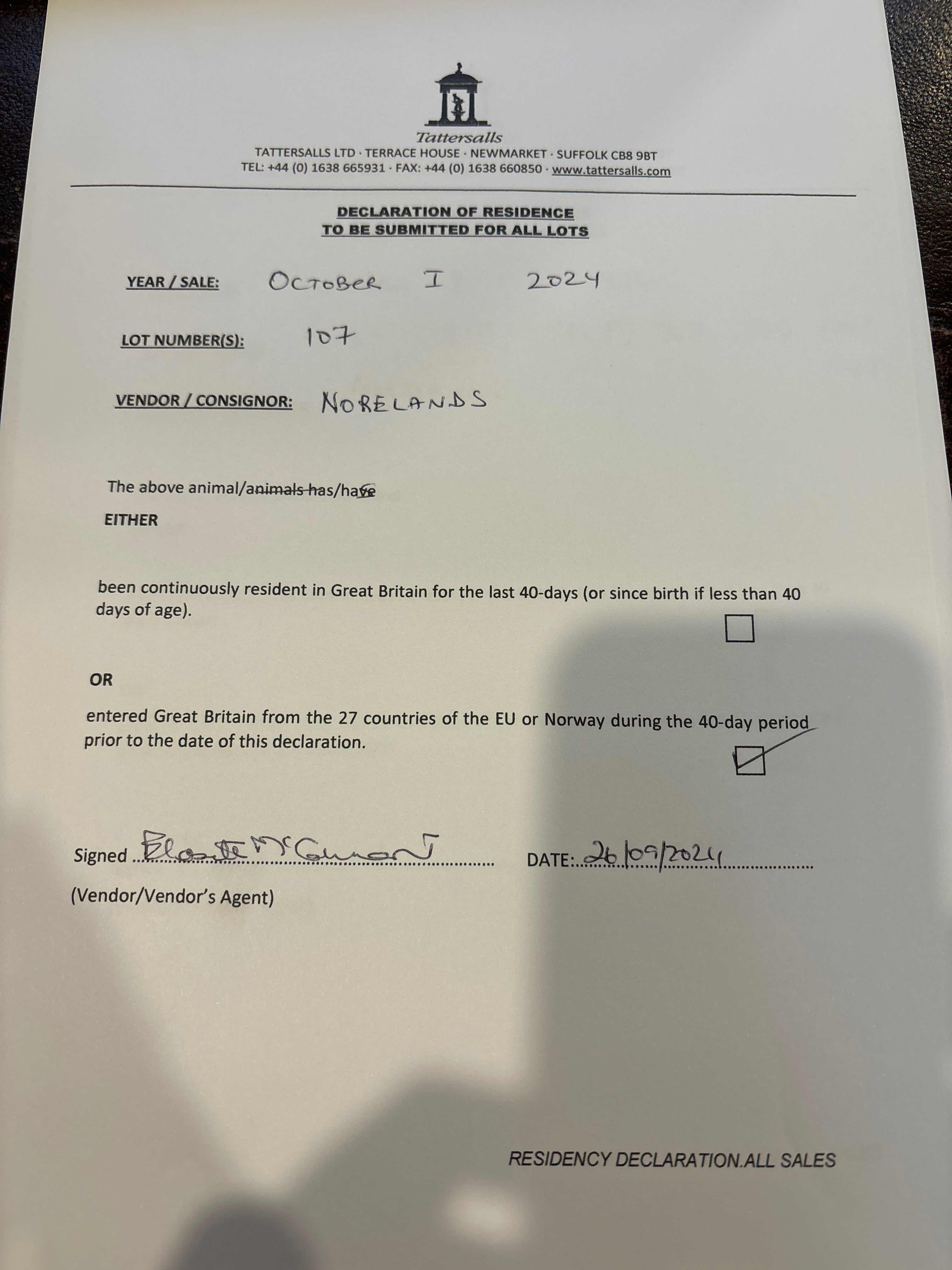 Consignor: Norelands, Ireland
