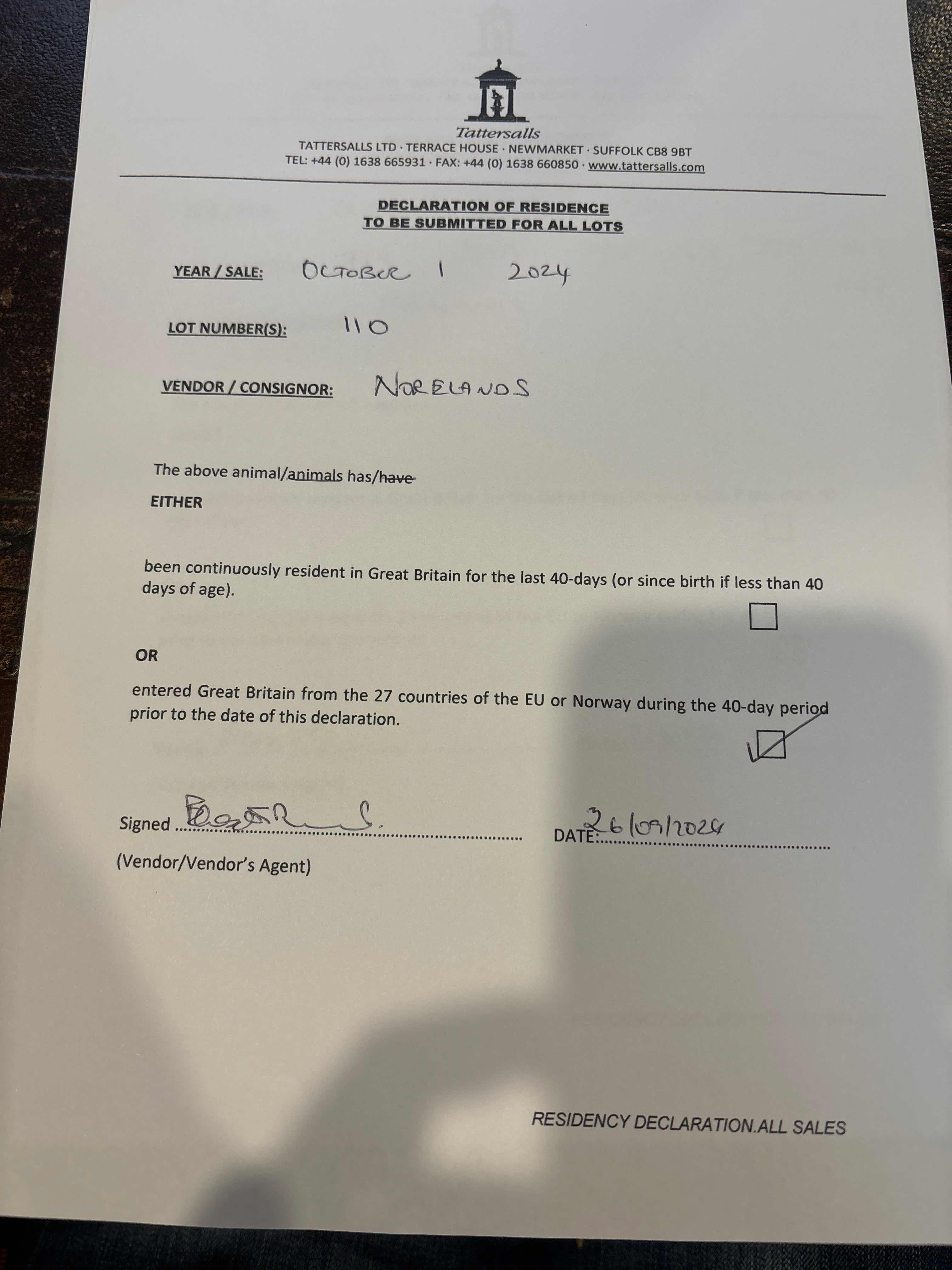 Consignor: Norelands, Ireland