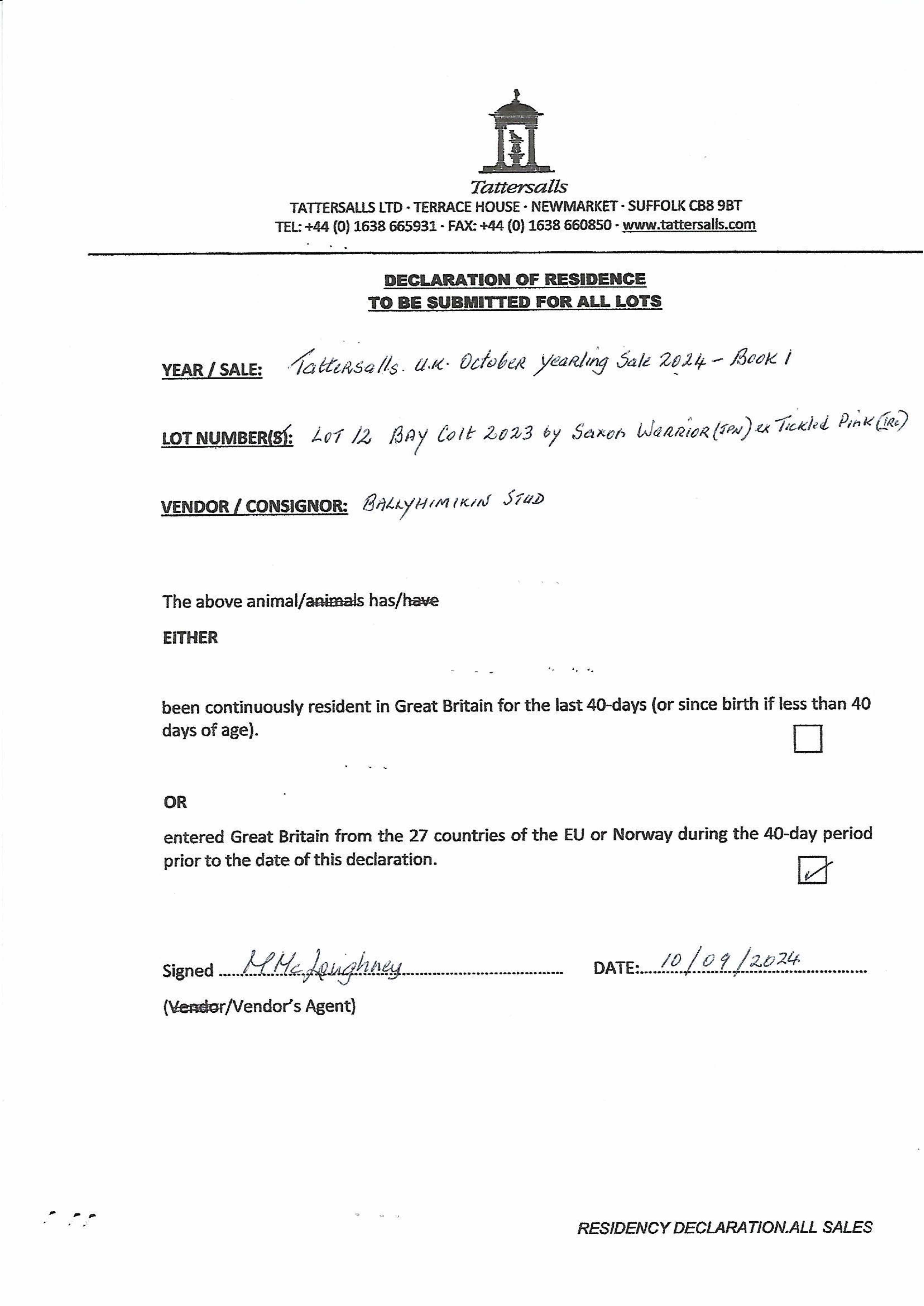Consignor: Ballyhimikin Stud, Ireland