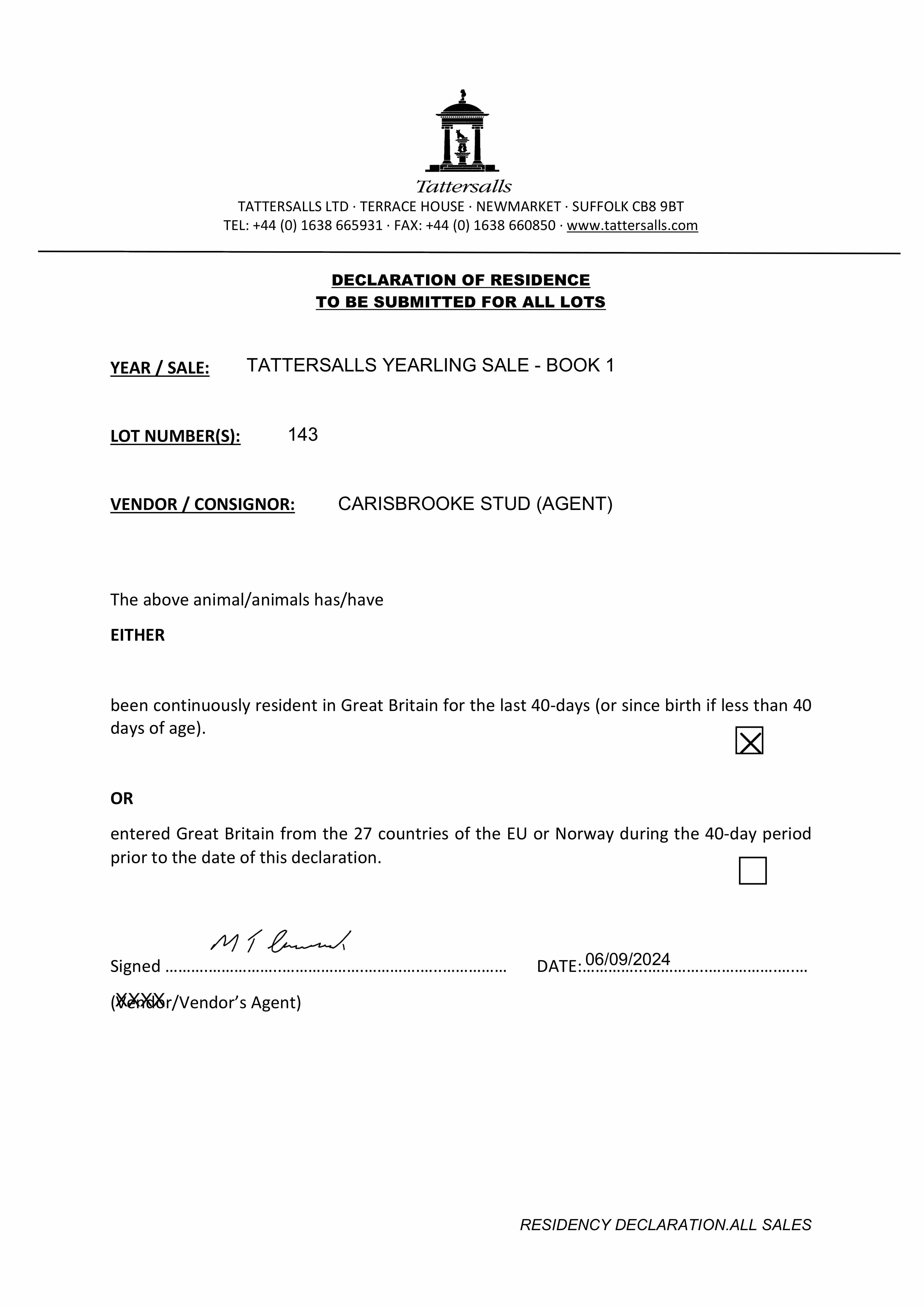 October Yearling Sale, Book 3 2025 lot 1419 F. by Ulysses (IRE) 2024, Jamie Railton (Agent)=>Timmy O'Byrne / Mathilde Texier 28,000 gns