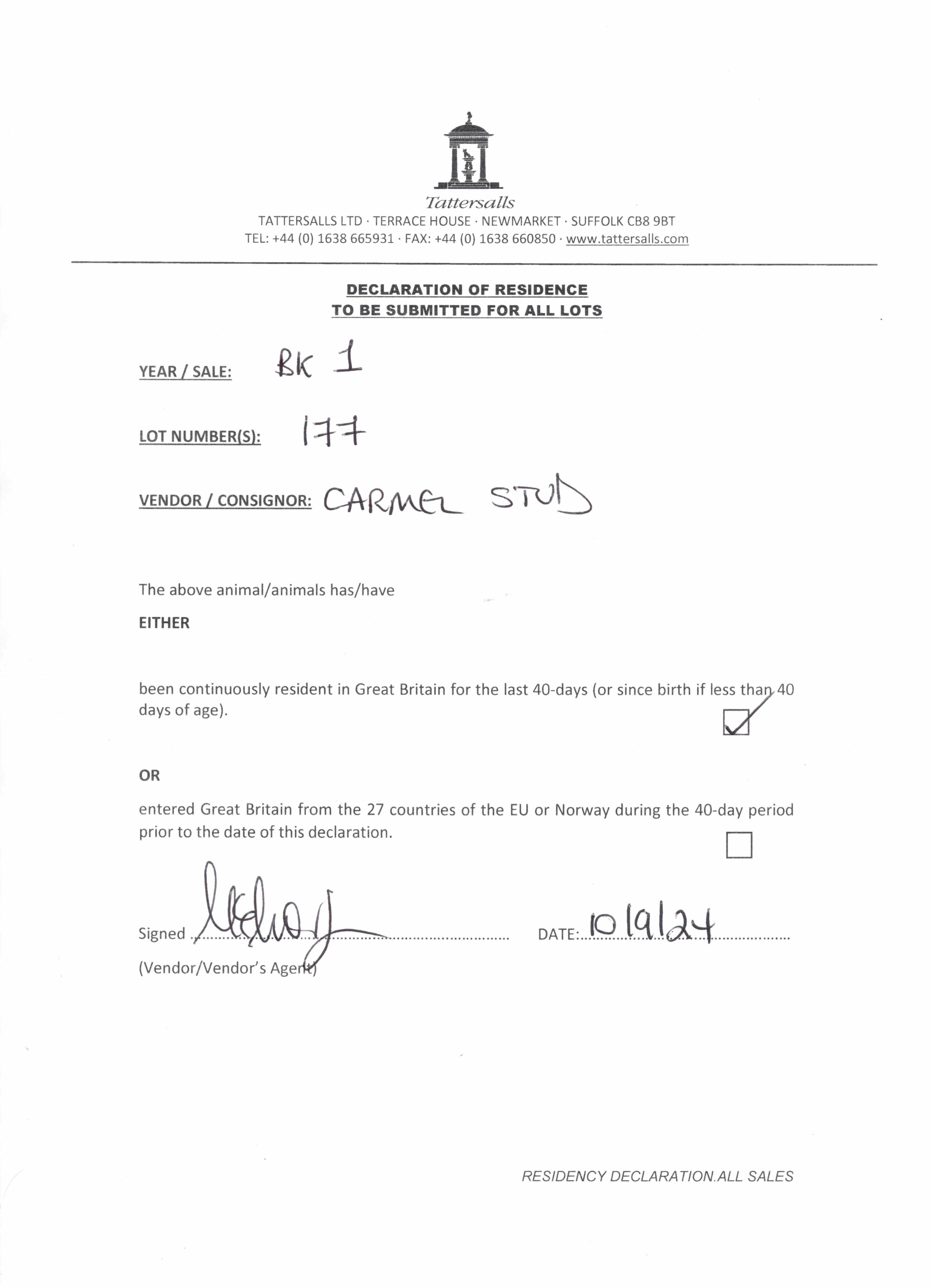 Consignor: Carmel Stud