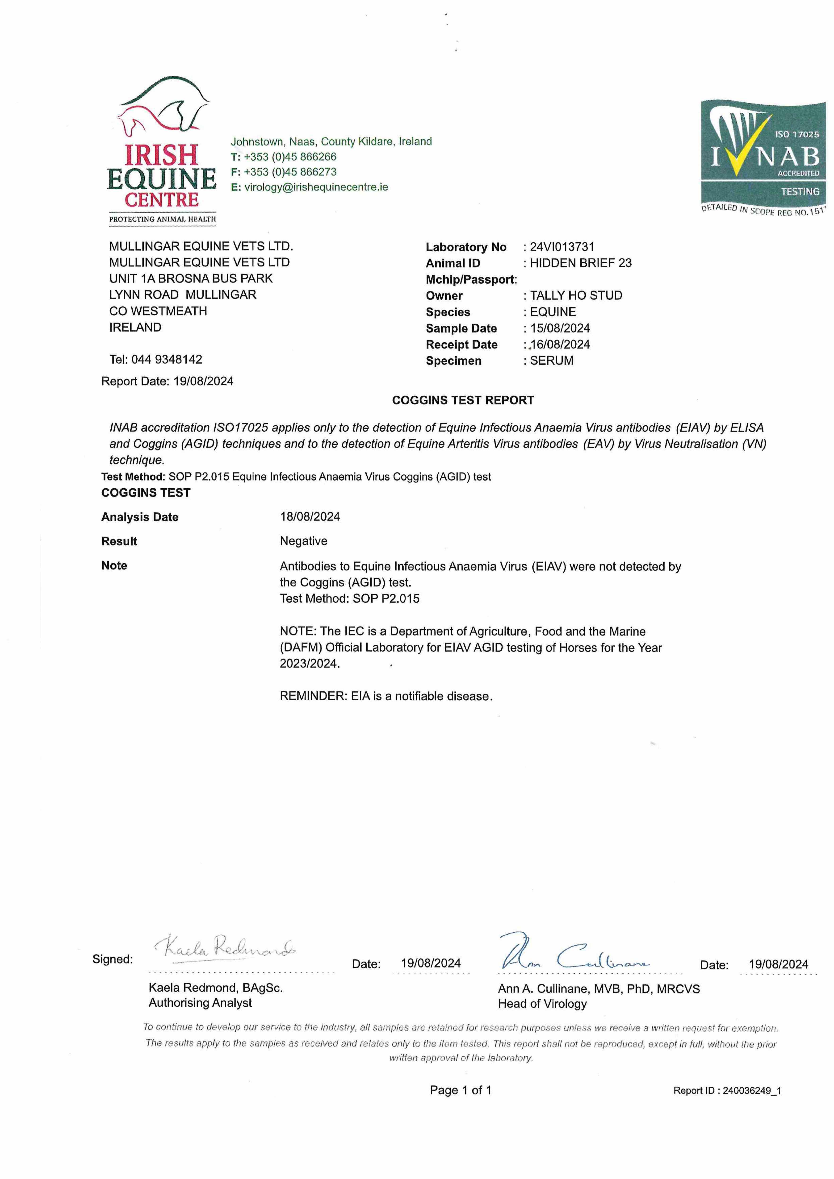 Consignor: Tally-Ho Stud, Ireland
