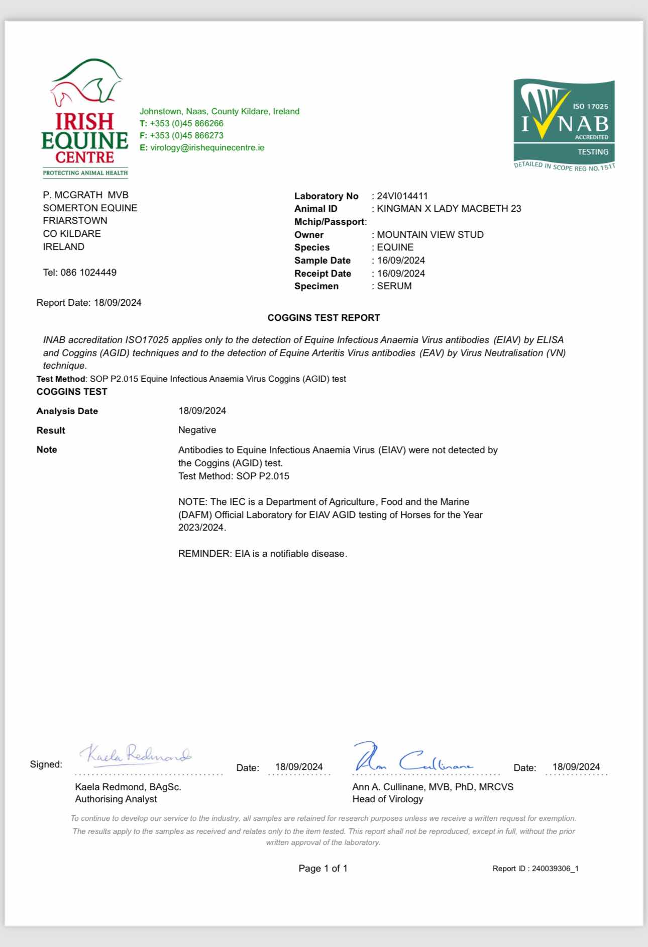 Consignor: Mountain View Stud, Ireland