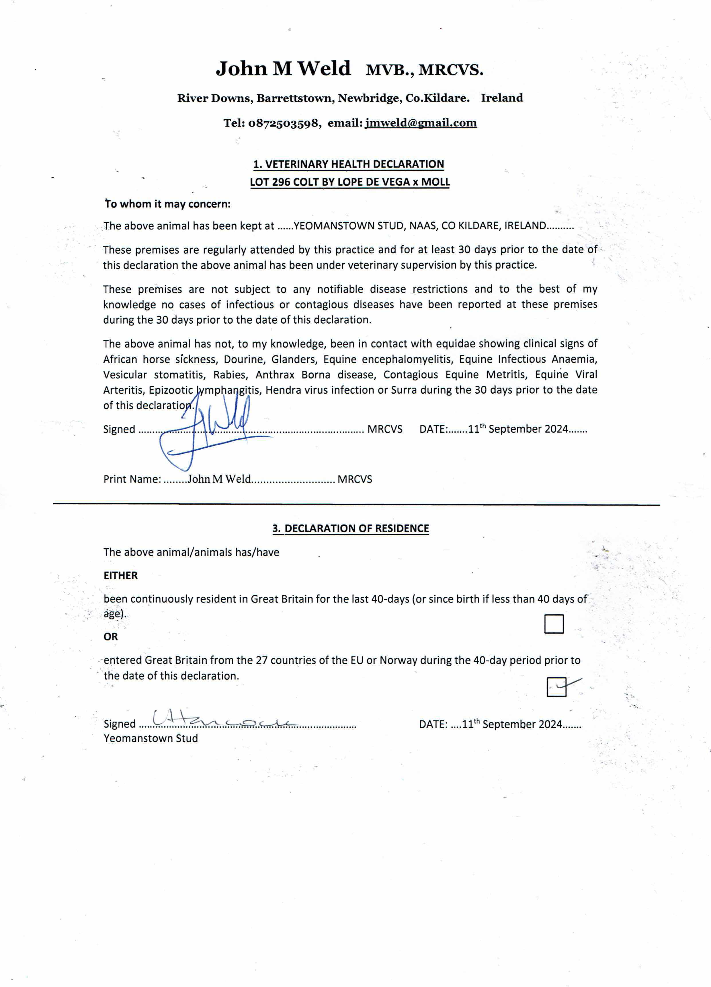 Consignor: Yeomanstown Stud, Ireland
