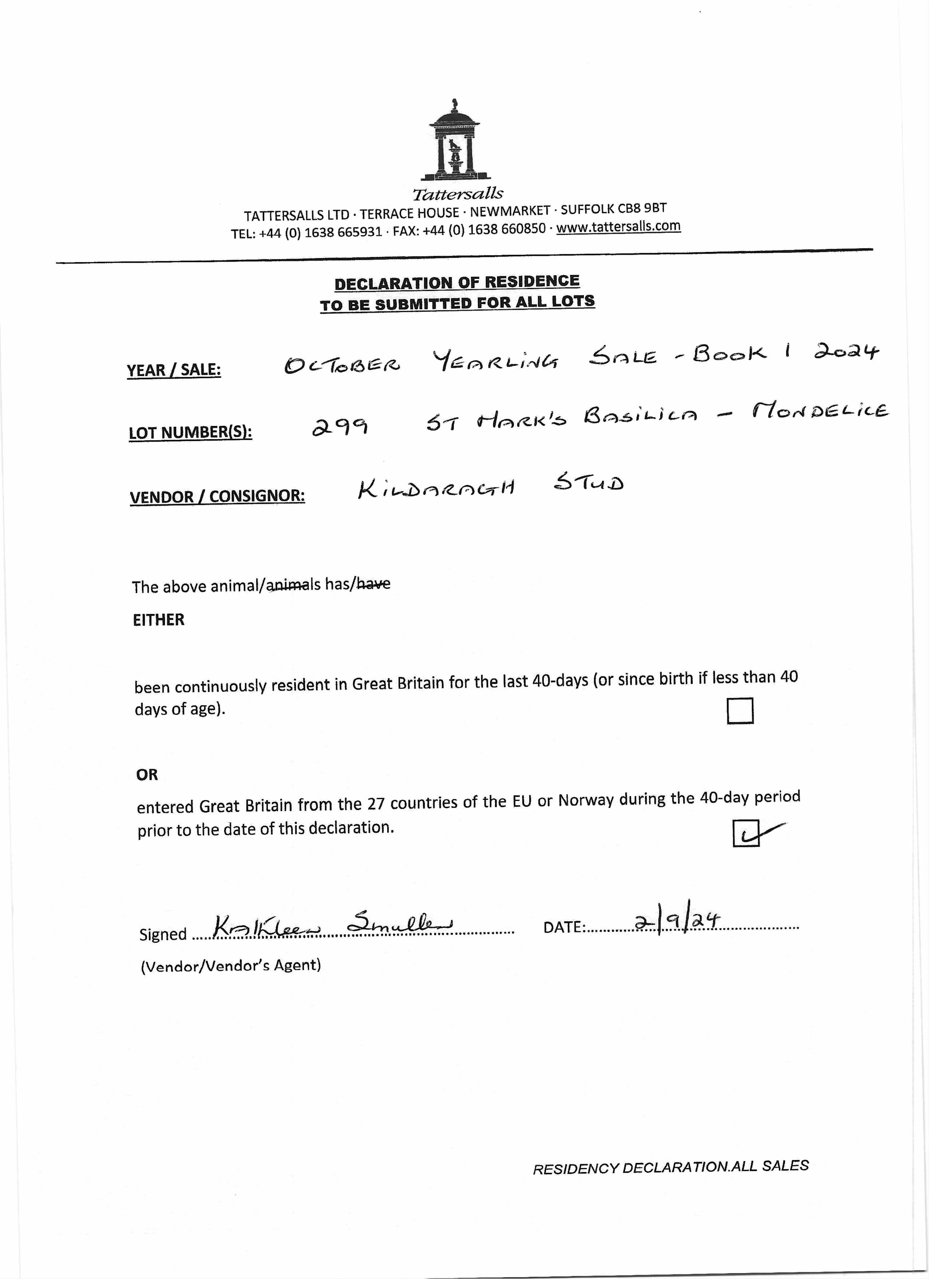Consignor: Kildaragh Stud, Ireland (Agent)