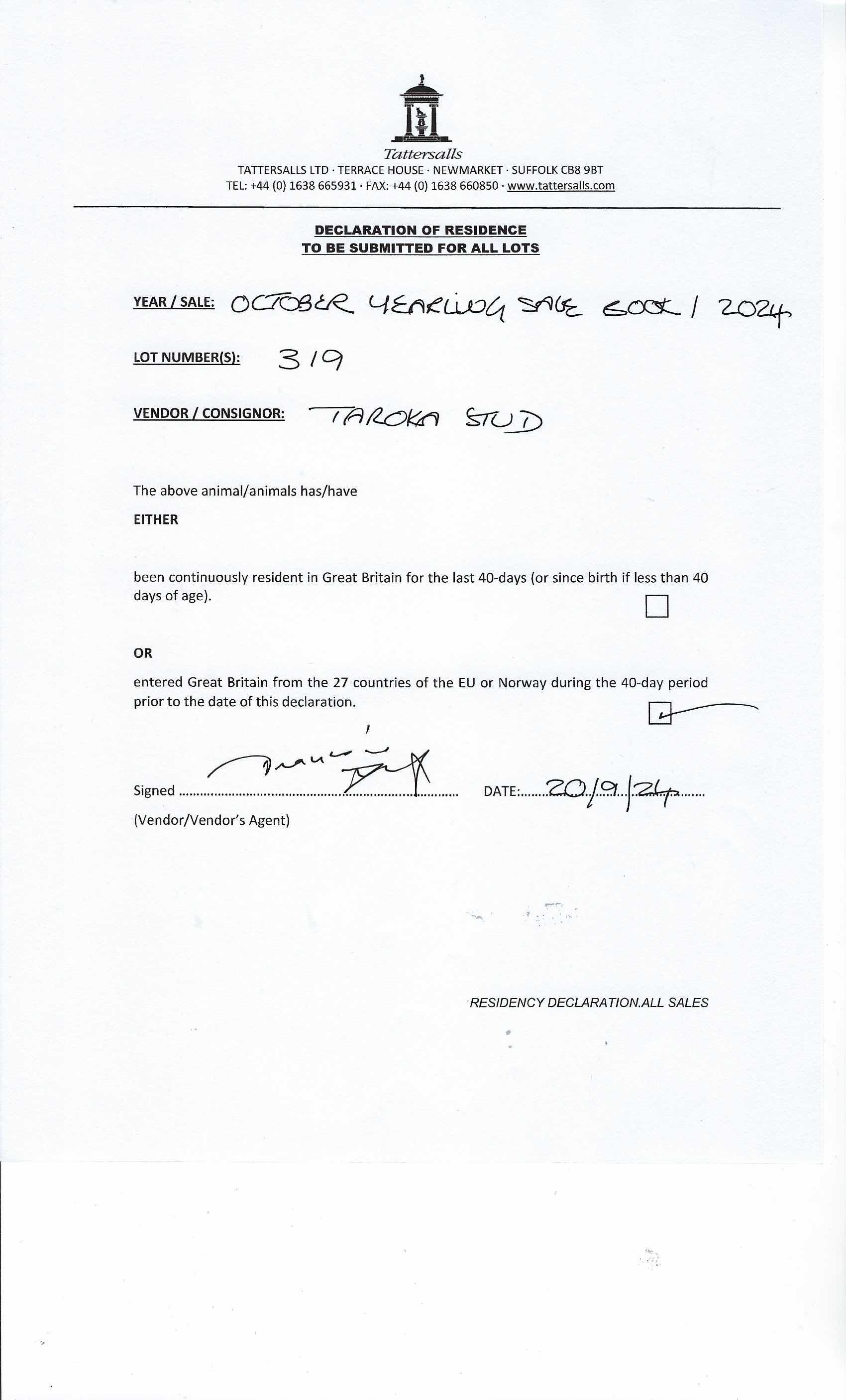 October Yearling Sale, Book 1 2025 lot 297 F. by Lope de Vega (IRE) 2024, Taroka Stud, Ireland=>James Toller 260,000 gns