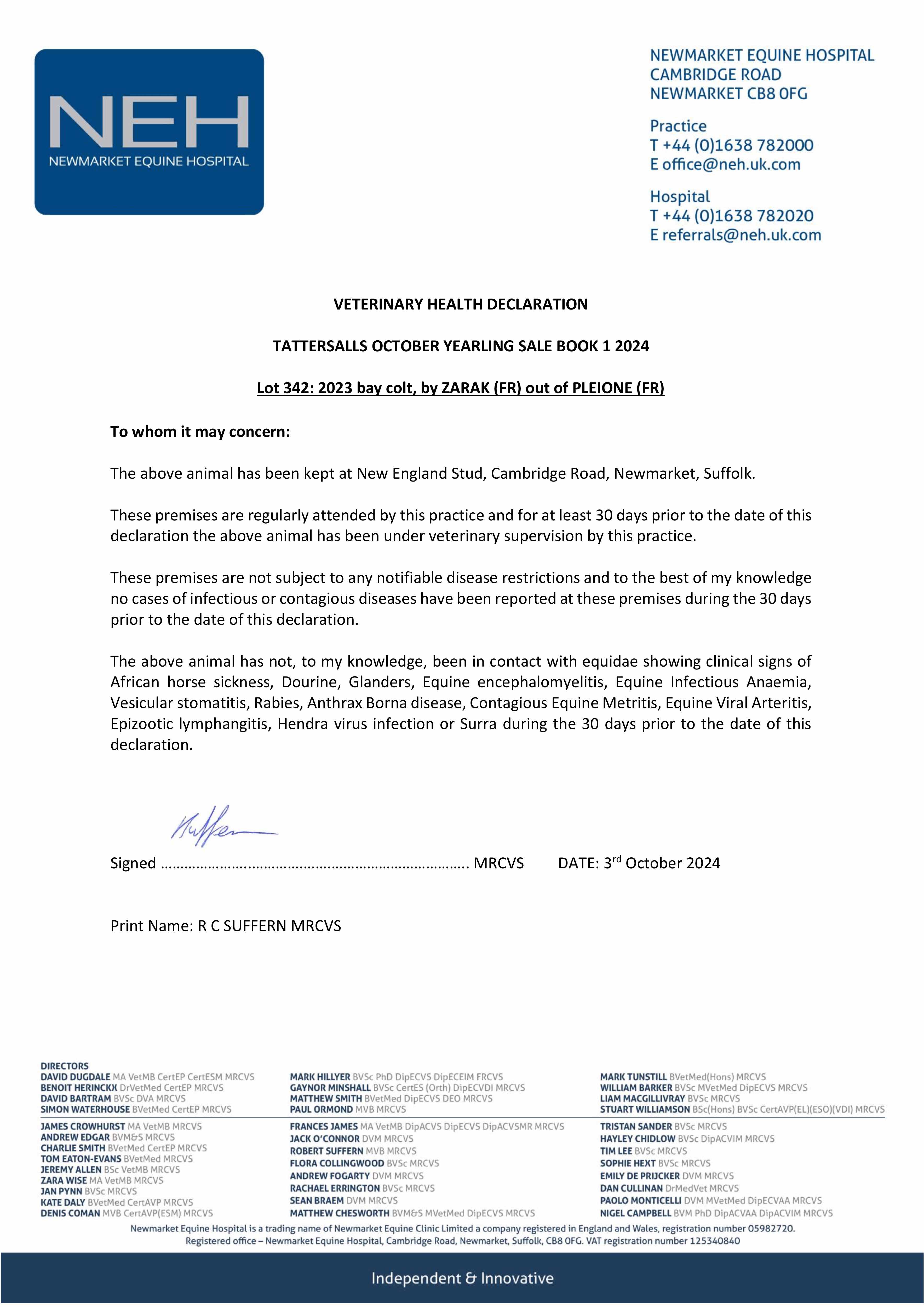 December Yearling Sale 2023 lot 11 C. by Fastnet Rock (AUS) 2022, New England Stud=>Vendor 40,000 gns