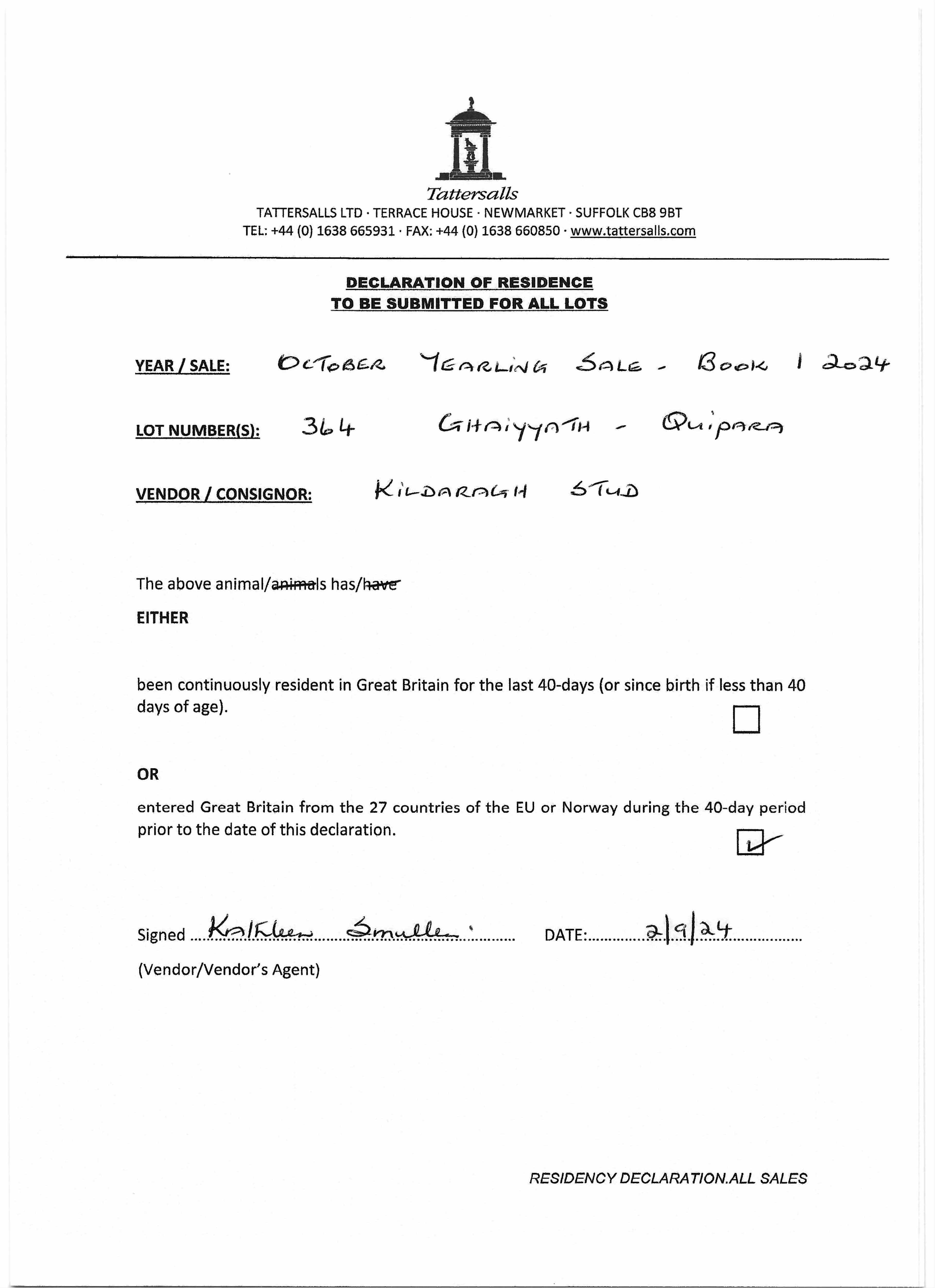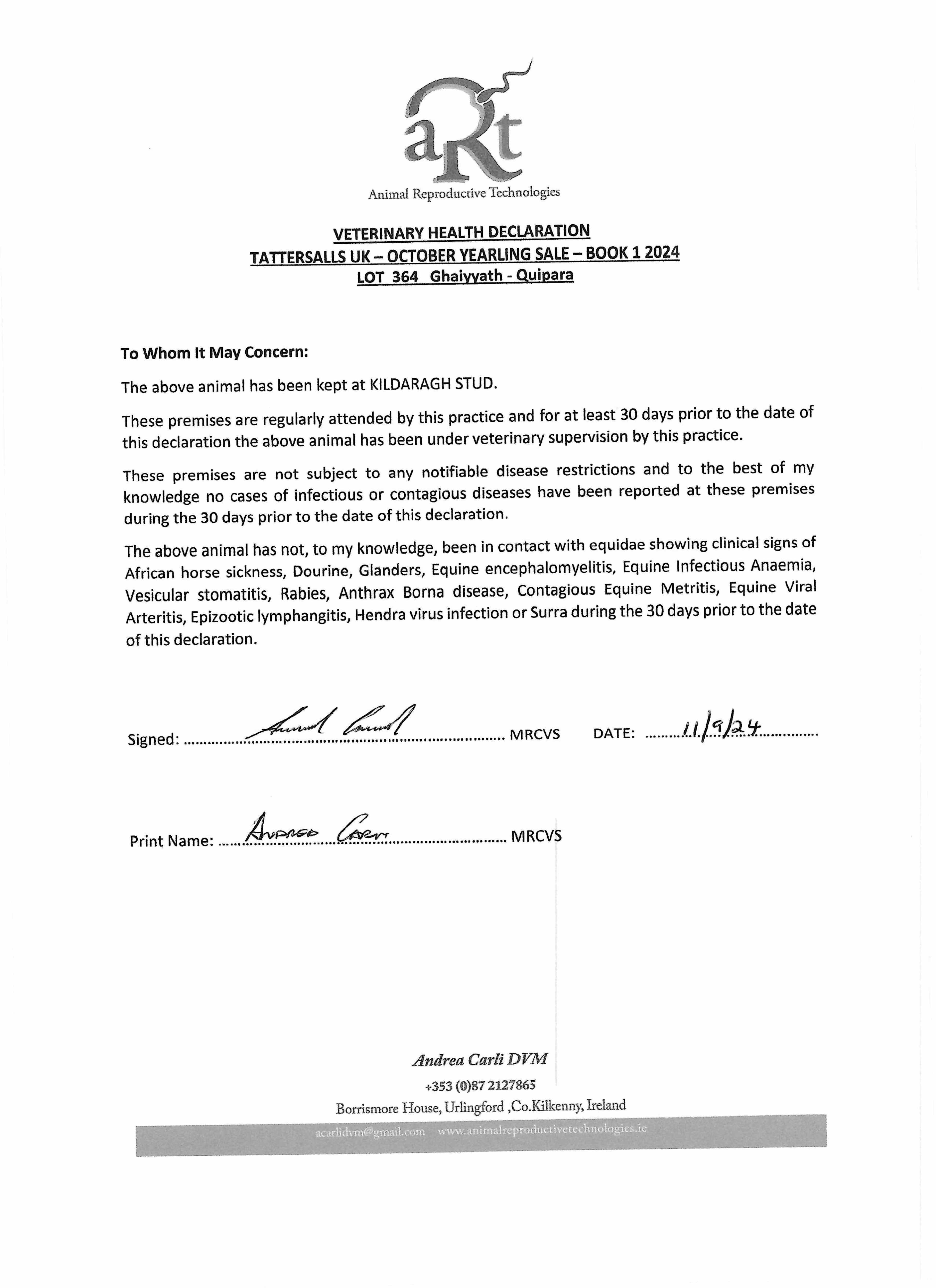 Consignor: Kildaragh Stud, Ireland (Agent)