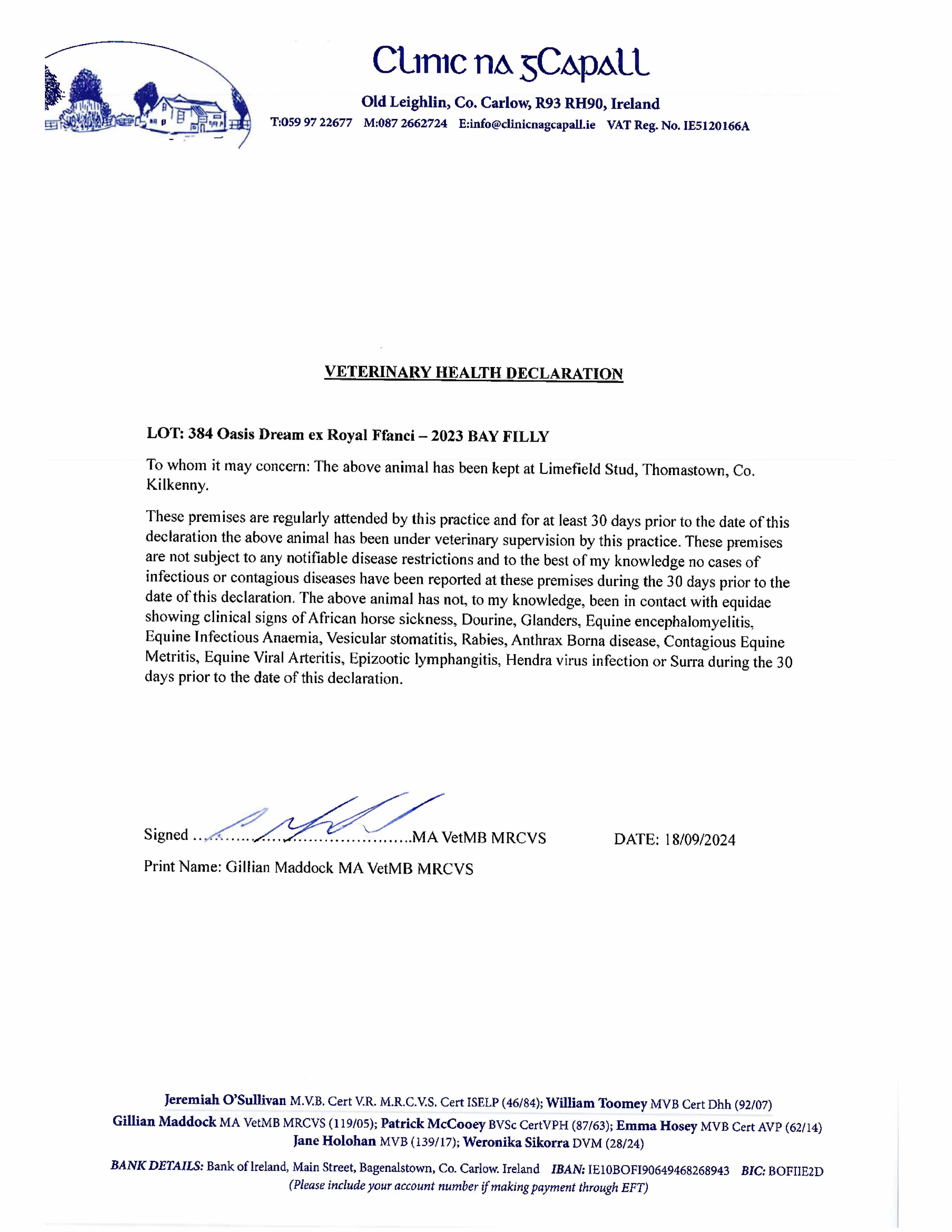 Consignor: Ballylinch Stud, Ireland