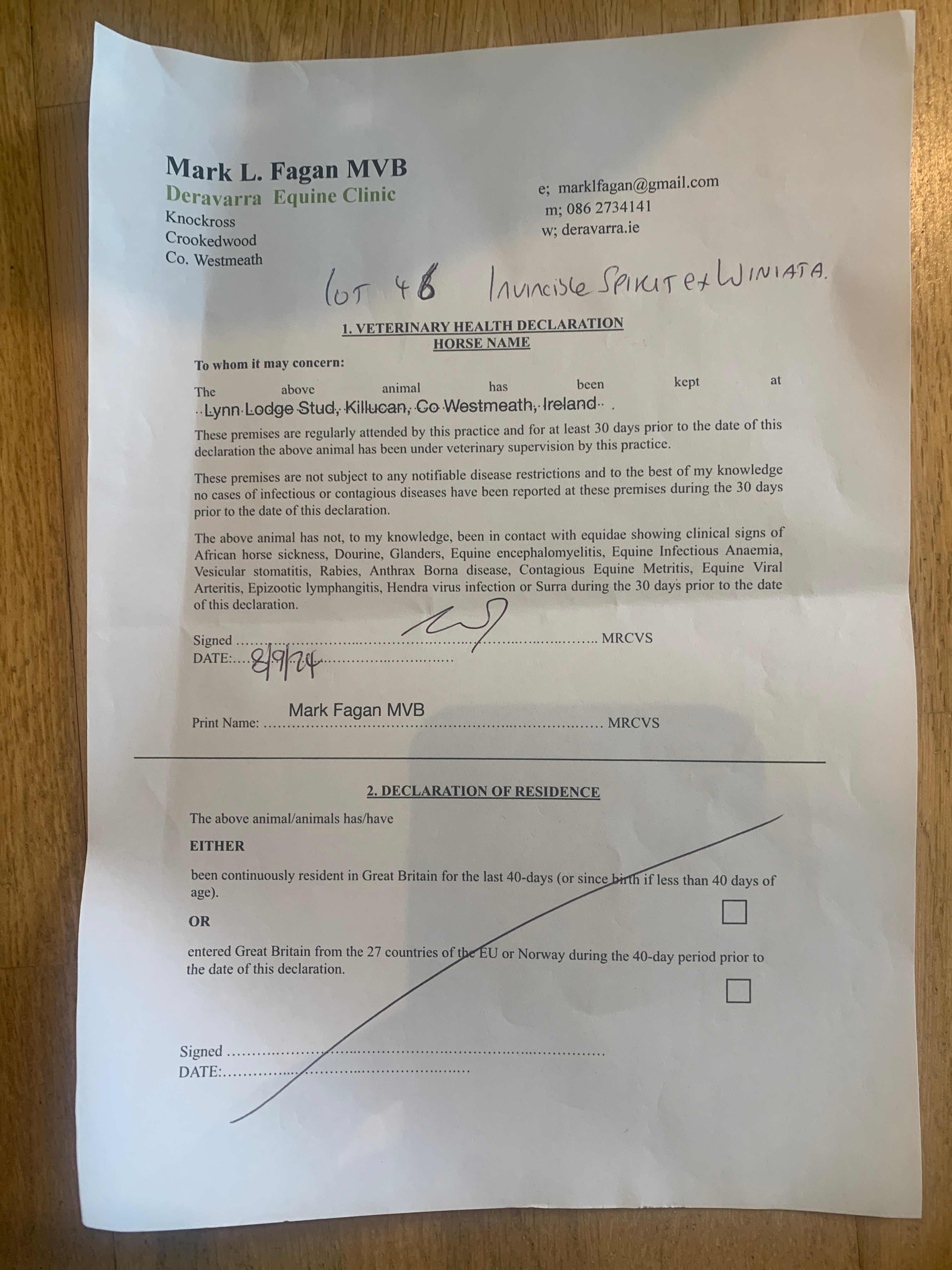 Consignor: Lynn Lodge Stud, Ireland