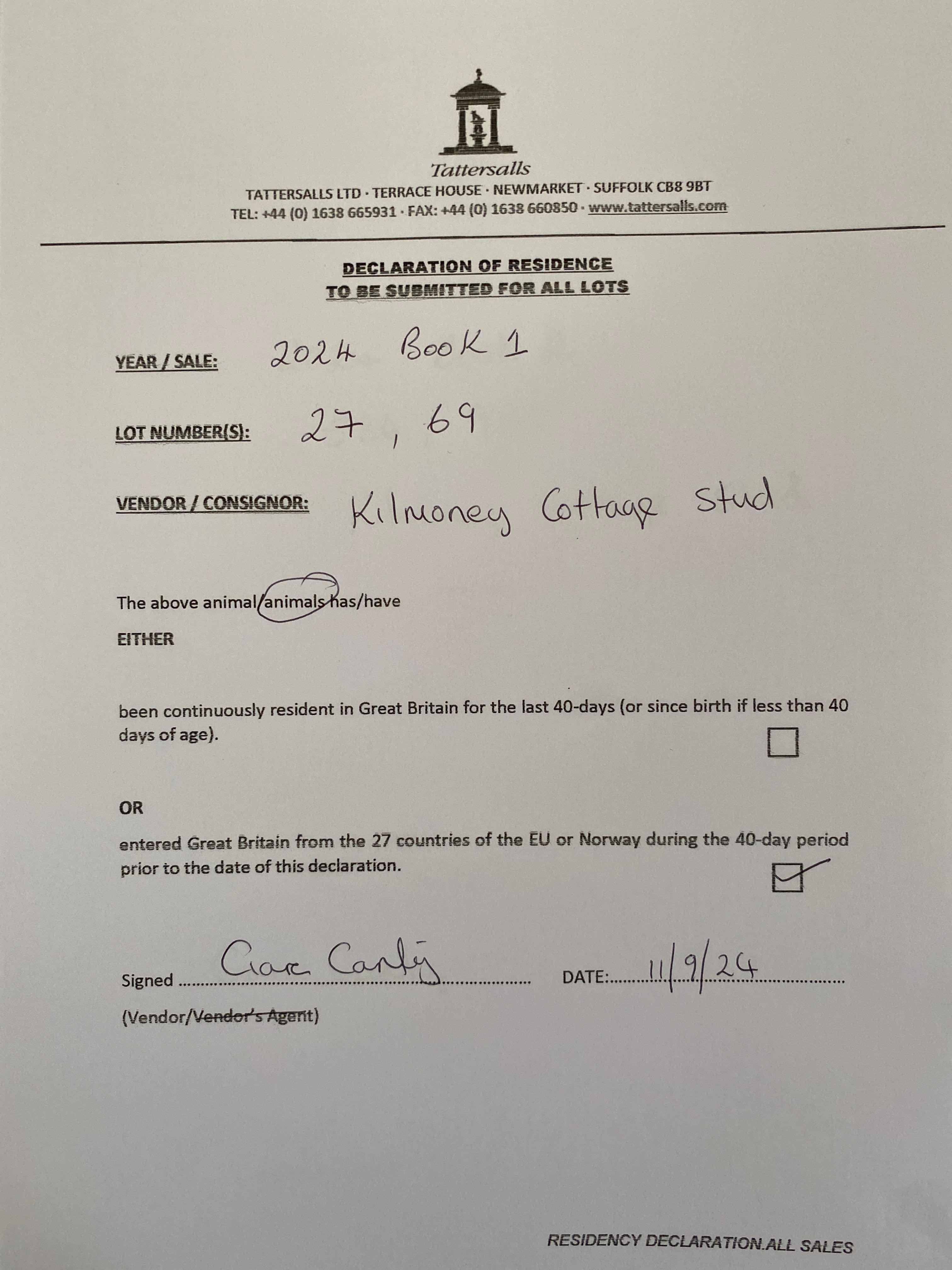 Consignor: Kilmoney Cottage Stud, Ireland