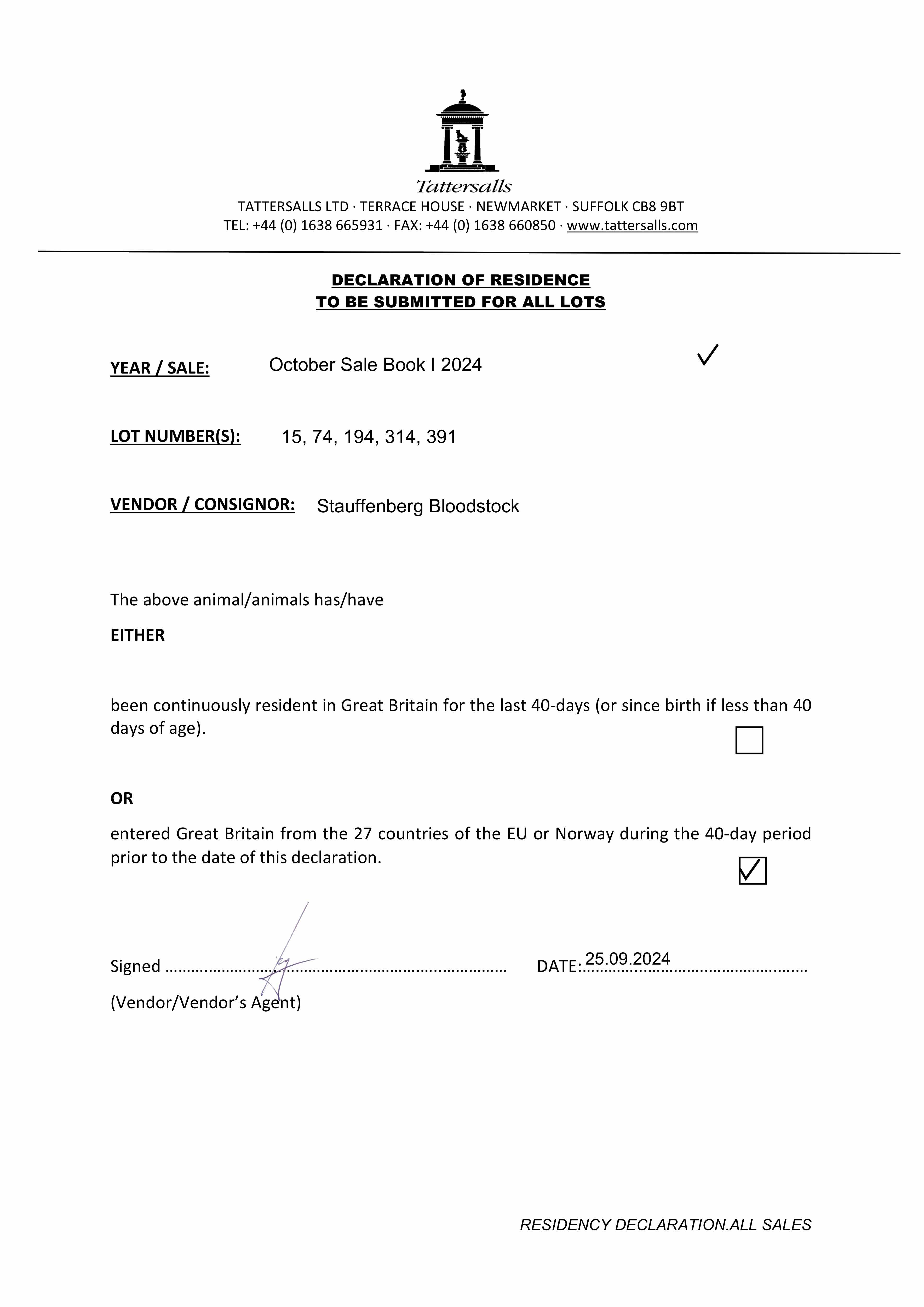 Contact: Philipp Stauffenberg ✆ +491716507181 ✉ bloodstock@stauffenberg.com