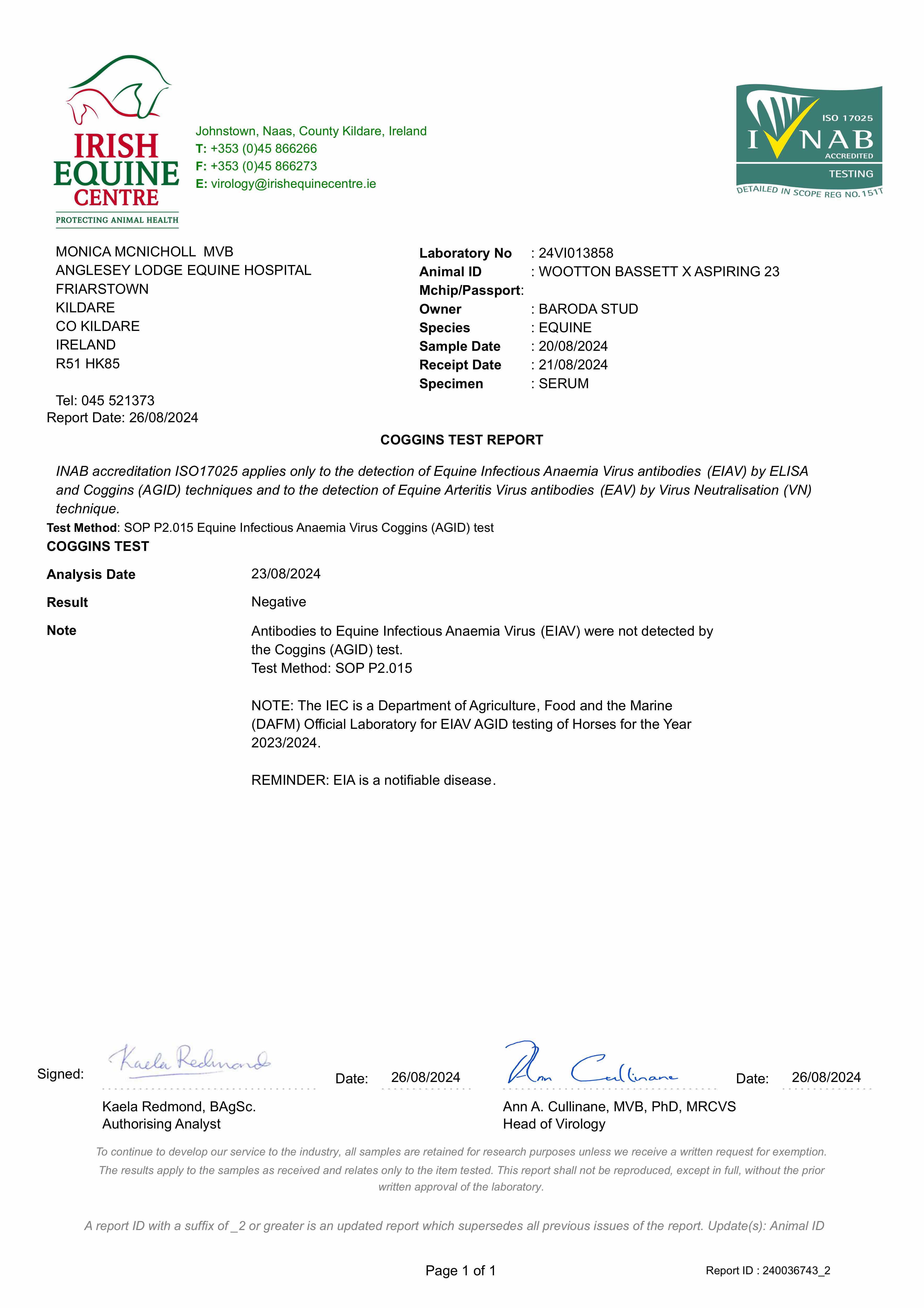 Own brother: COUNTY MAYO (IRE) (2022 c. by Wootton Bassett (GB)), won 1 race at 2 years, 2024, from only 2 starts.