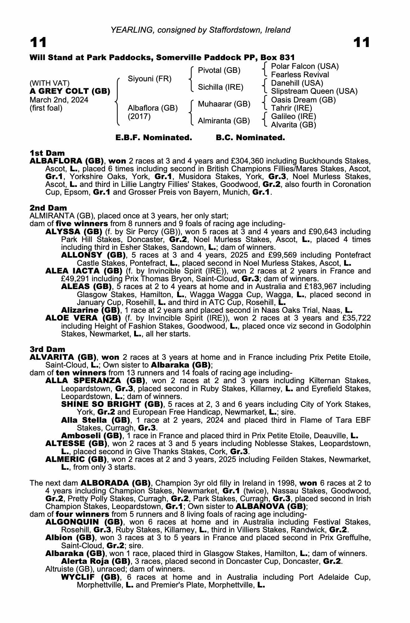Under 3rd dam: ALMERIC (GB), won 3 races at 2 and 3 years, 2025 including Doonside Cup, Ayr, L., from only 4 starts.