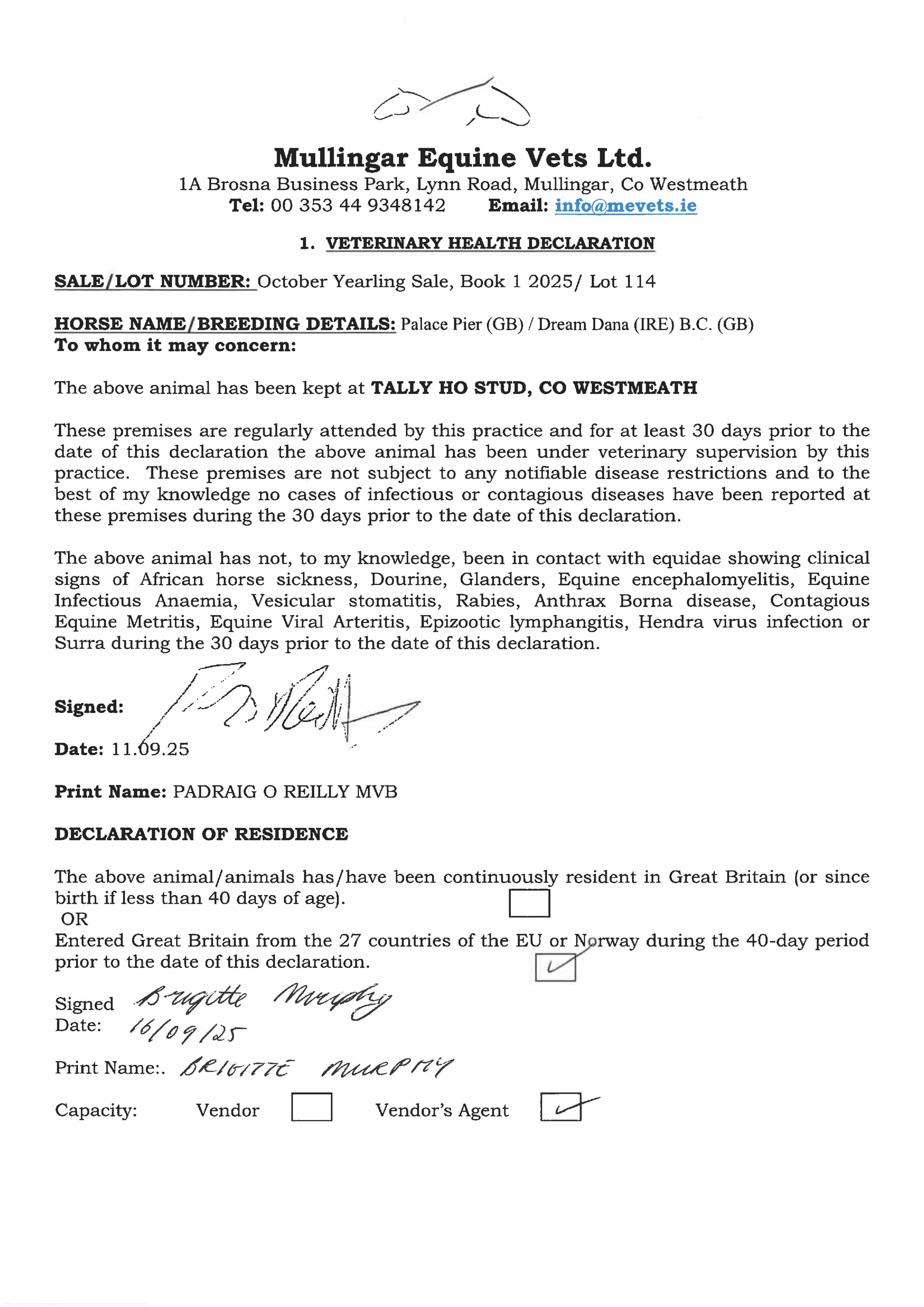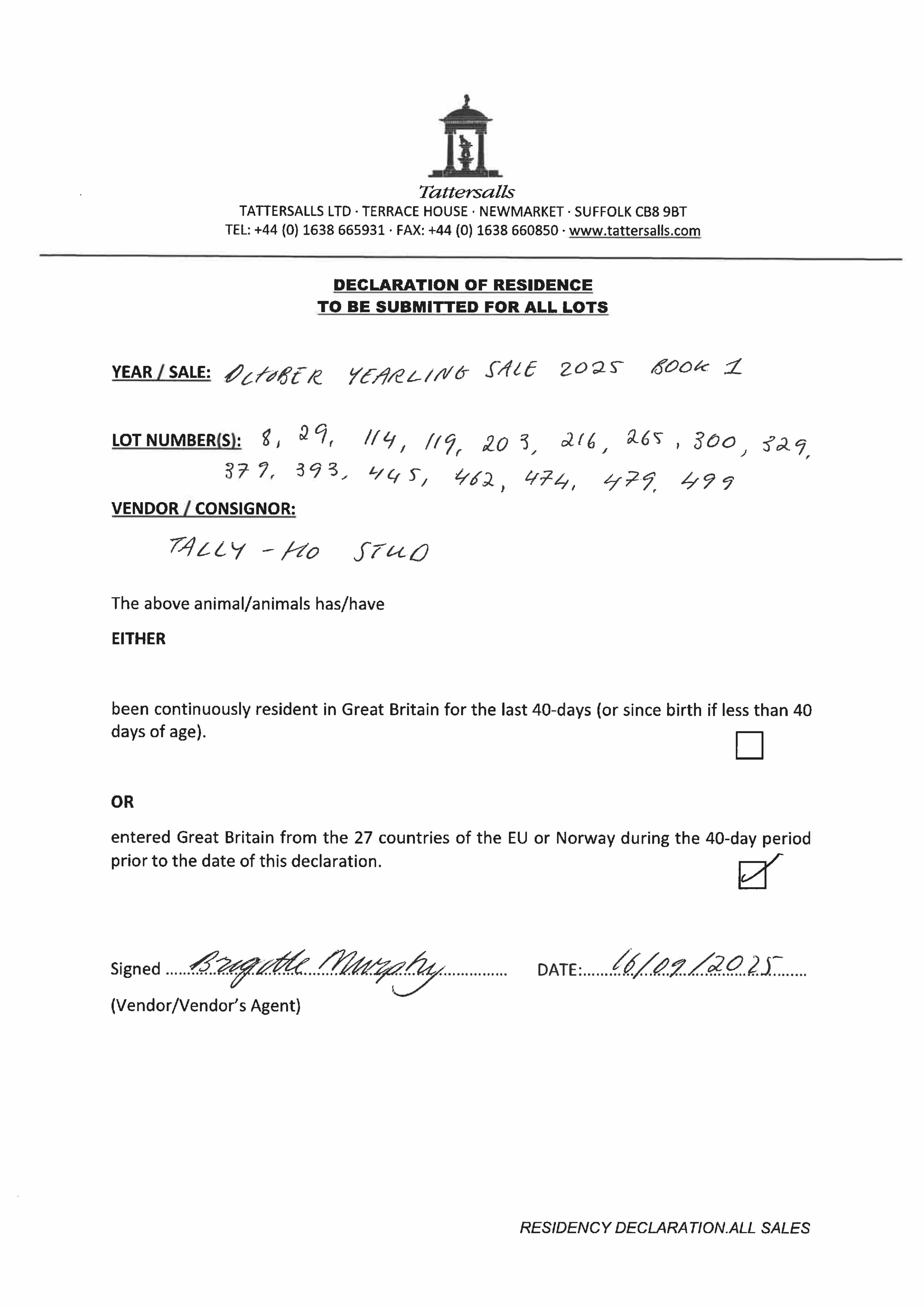 Consignor: Tally-Ho Stud, Ireland