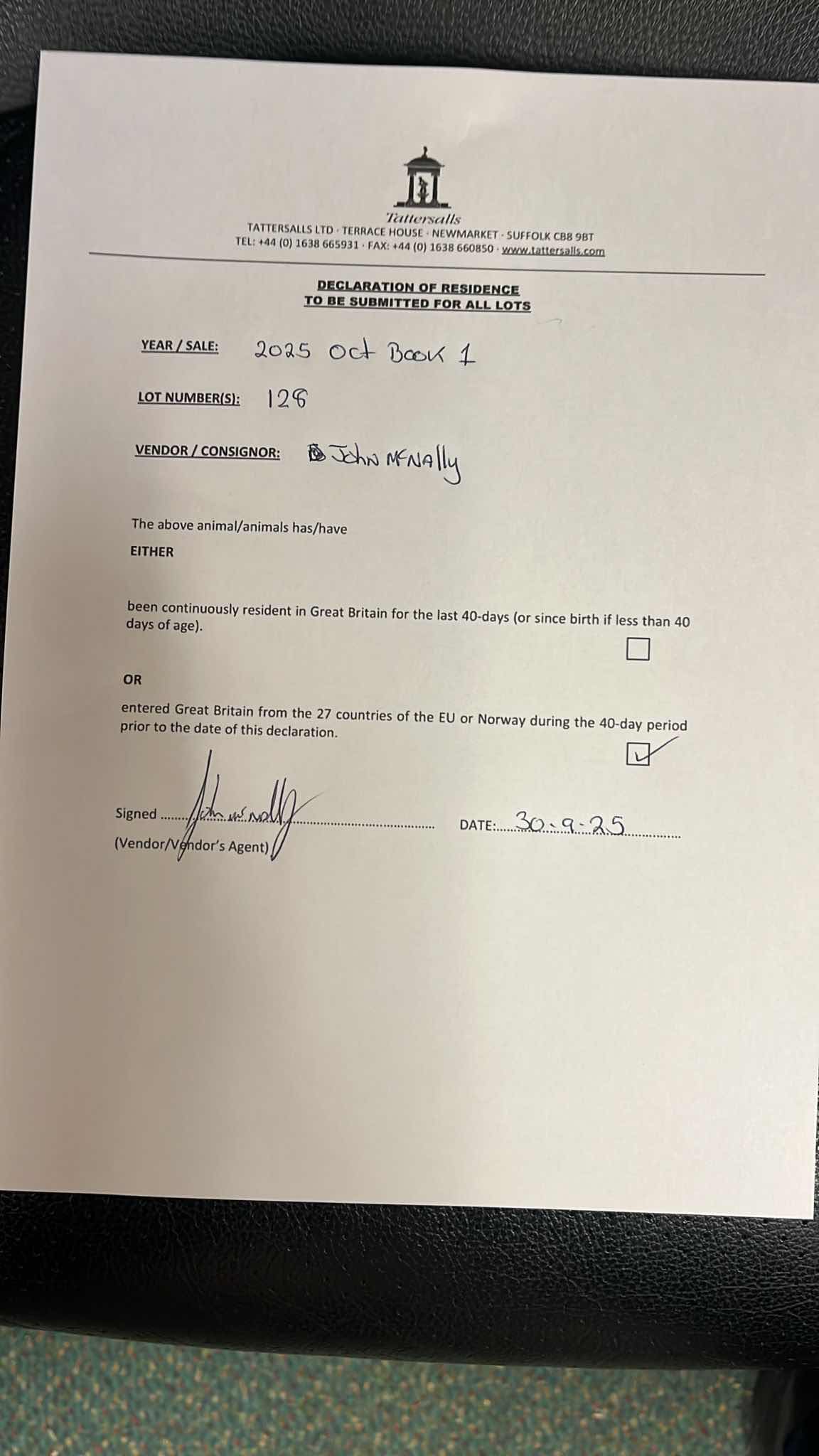 Consignor: Jamie Railton (Agent)