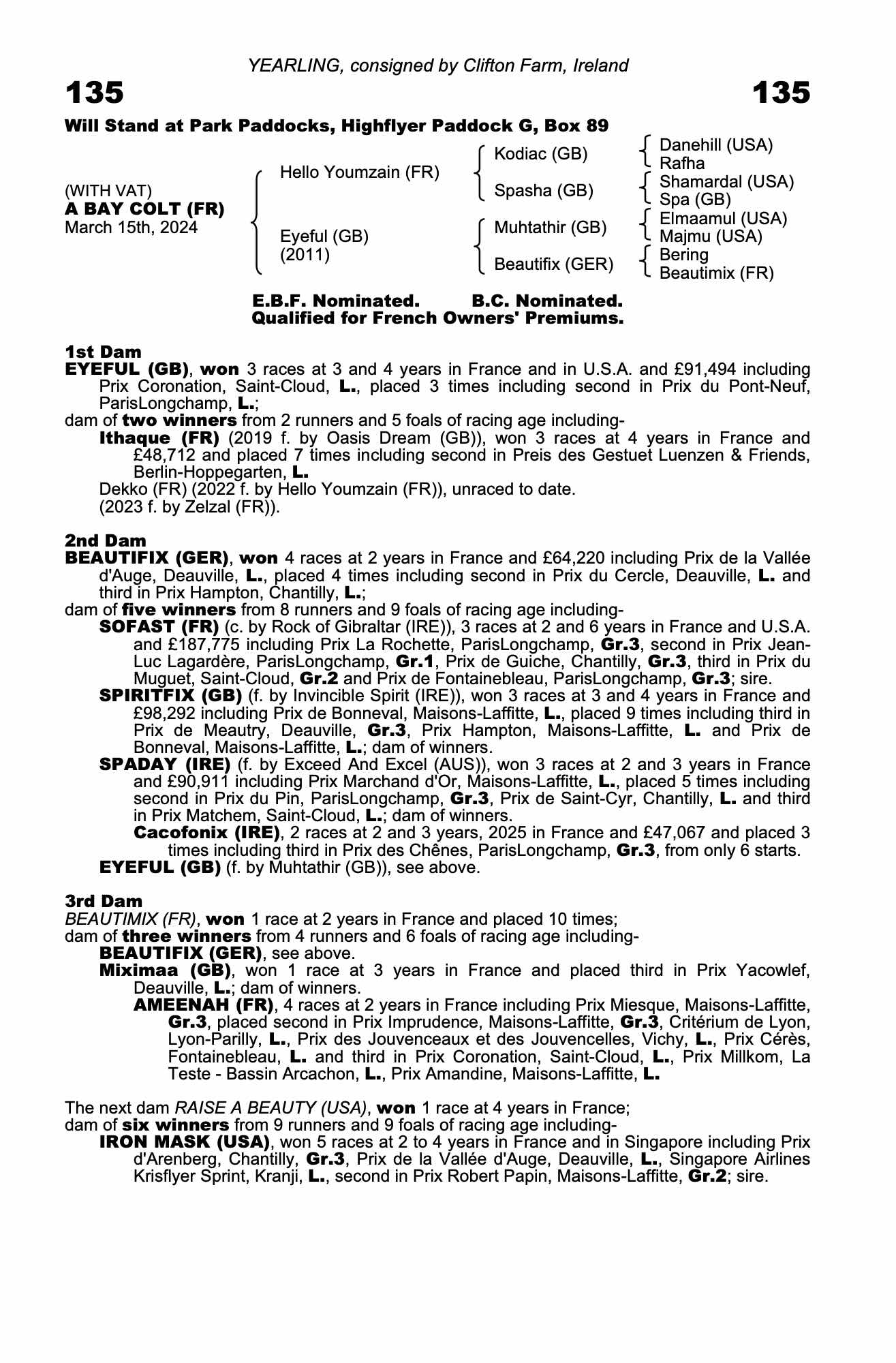Lot 135 Hello Youmzain (FR) /Eyeful (GB) B.C. (FR)