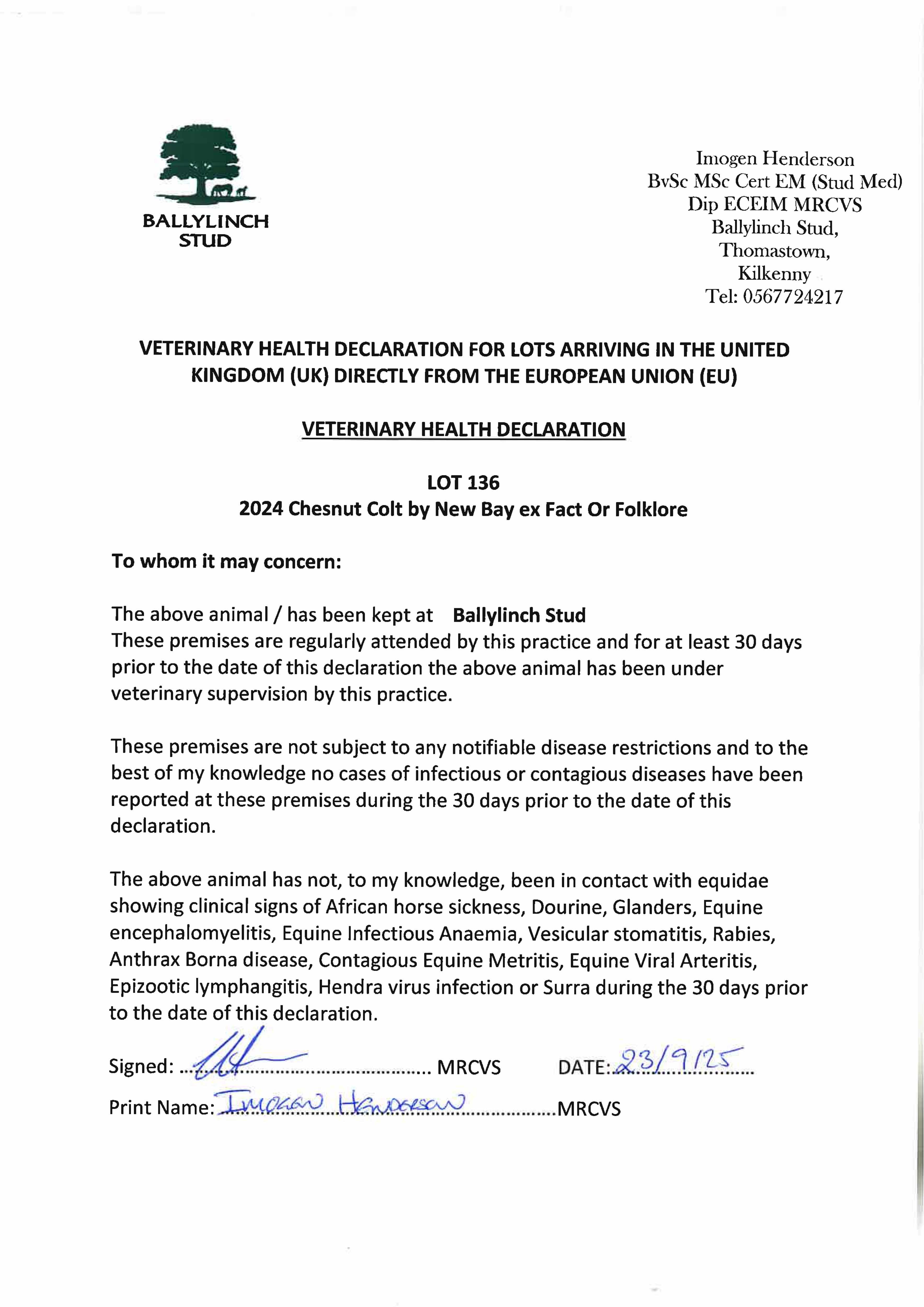 Consignor: Ballylinch Stud, Ireland