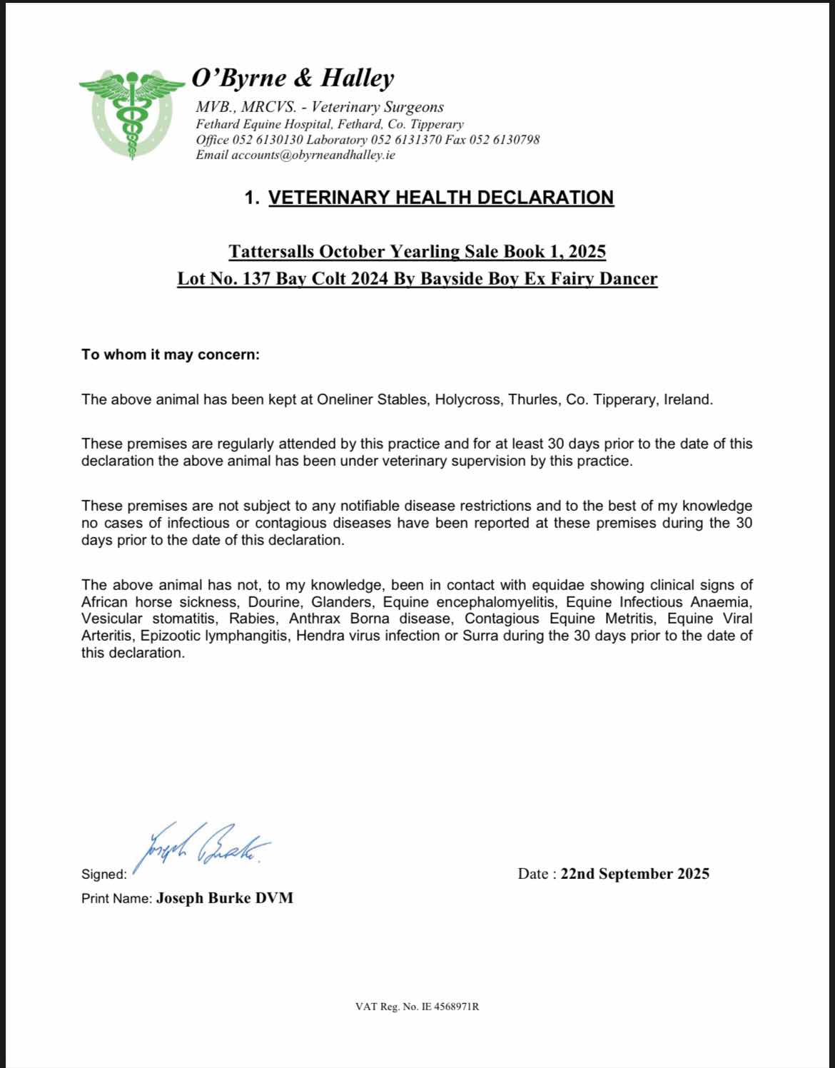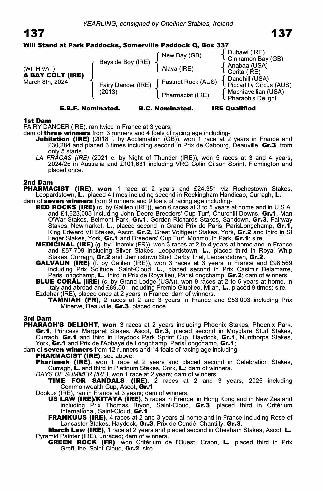 Consignor: Oneliner Stables, Ireland