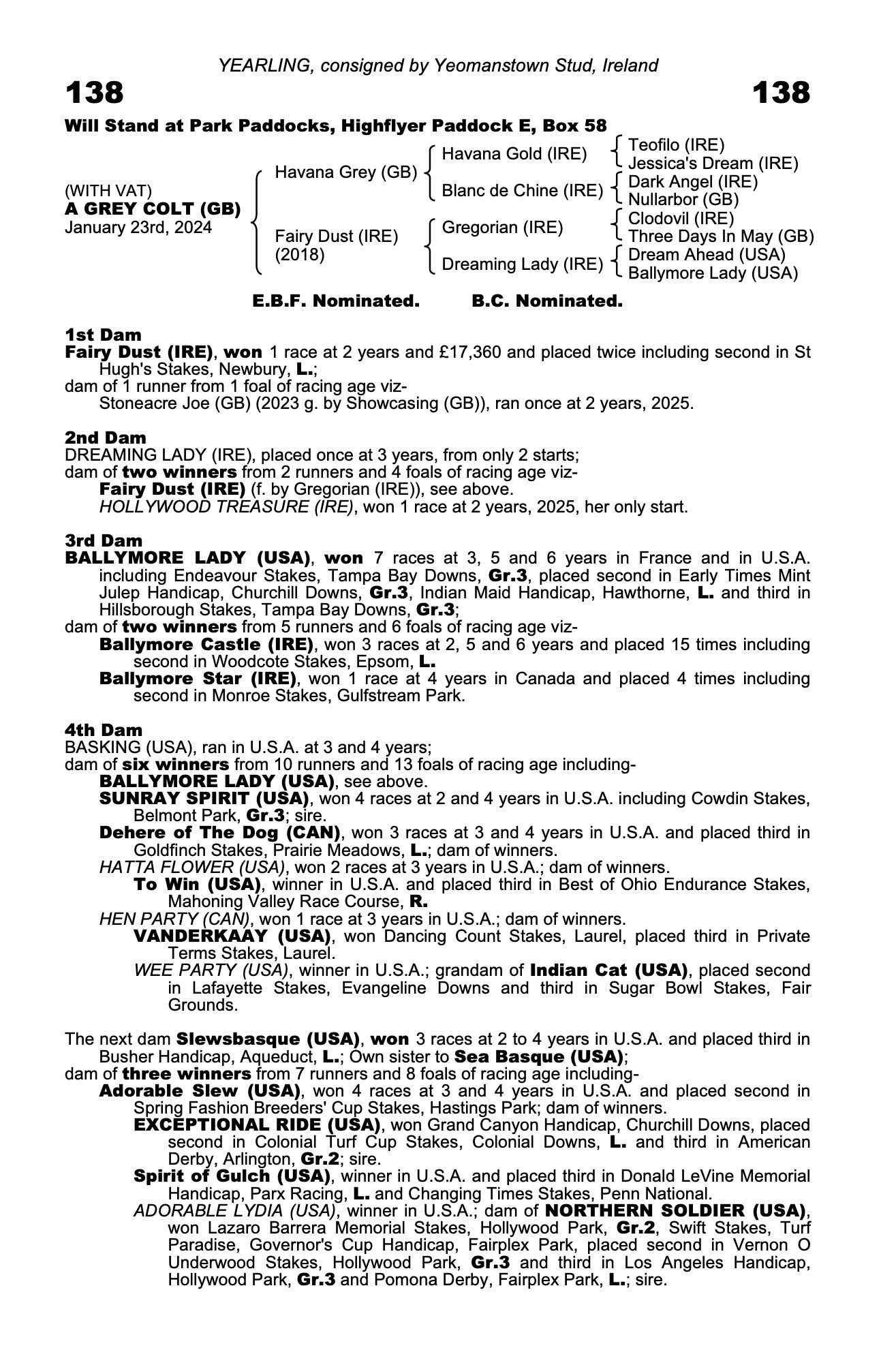Under 2nd dam: HOLLYWOOD TREASURE (IRE) (f. by Gregorian (IRE)), won 2 races at 2 years, 2025 and £29,192 including St Hugh's Stakes, Newbury, L., all her starts.