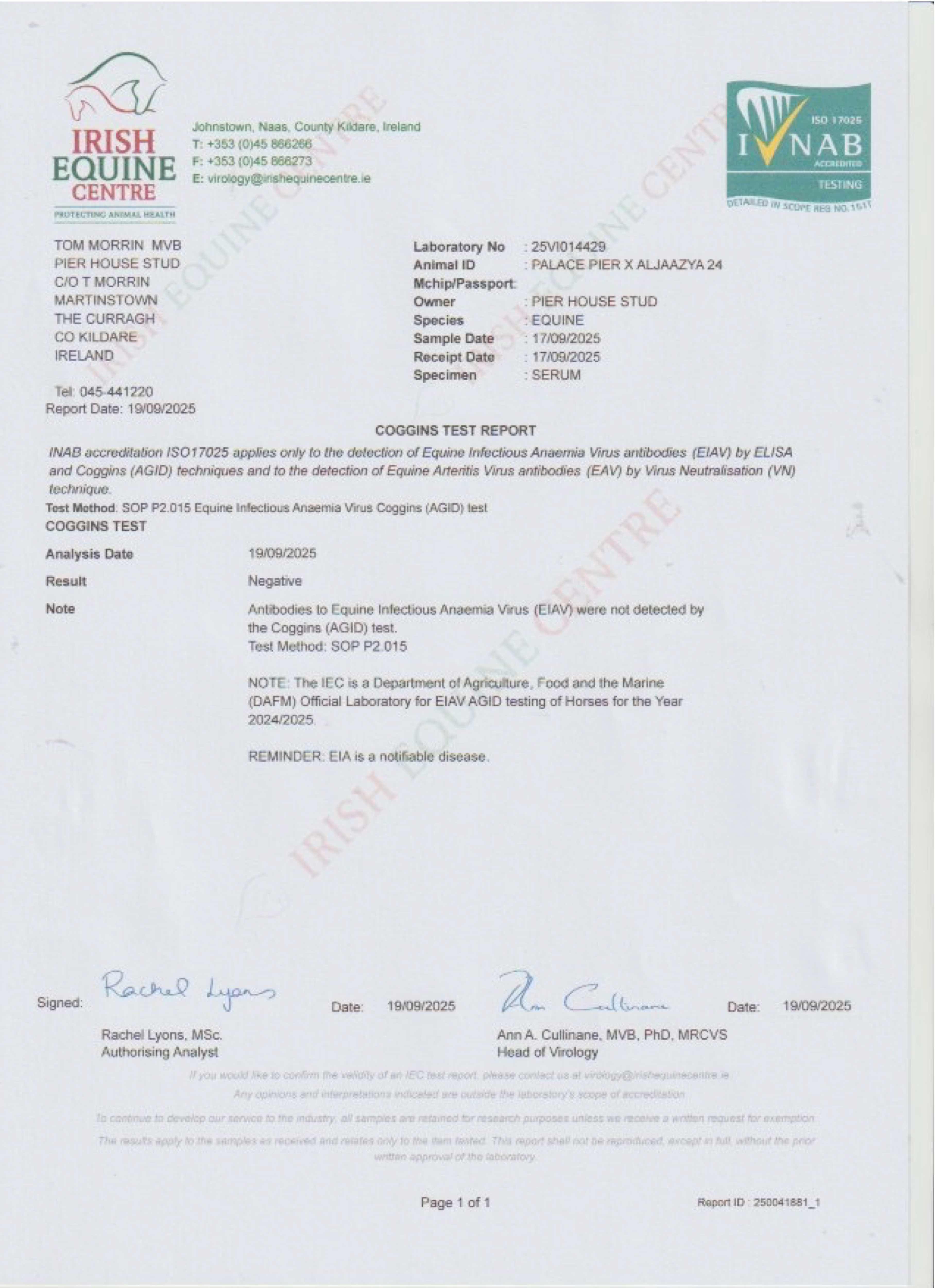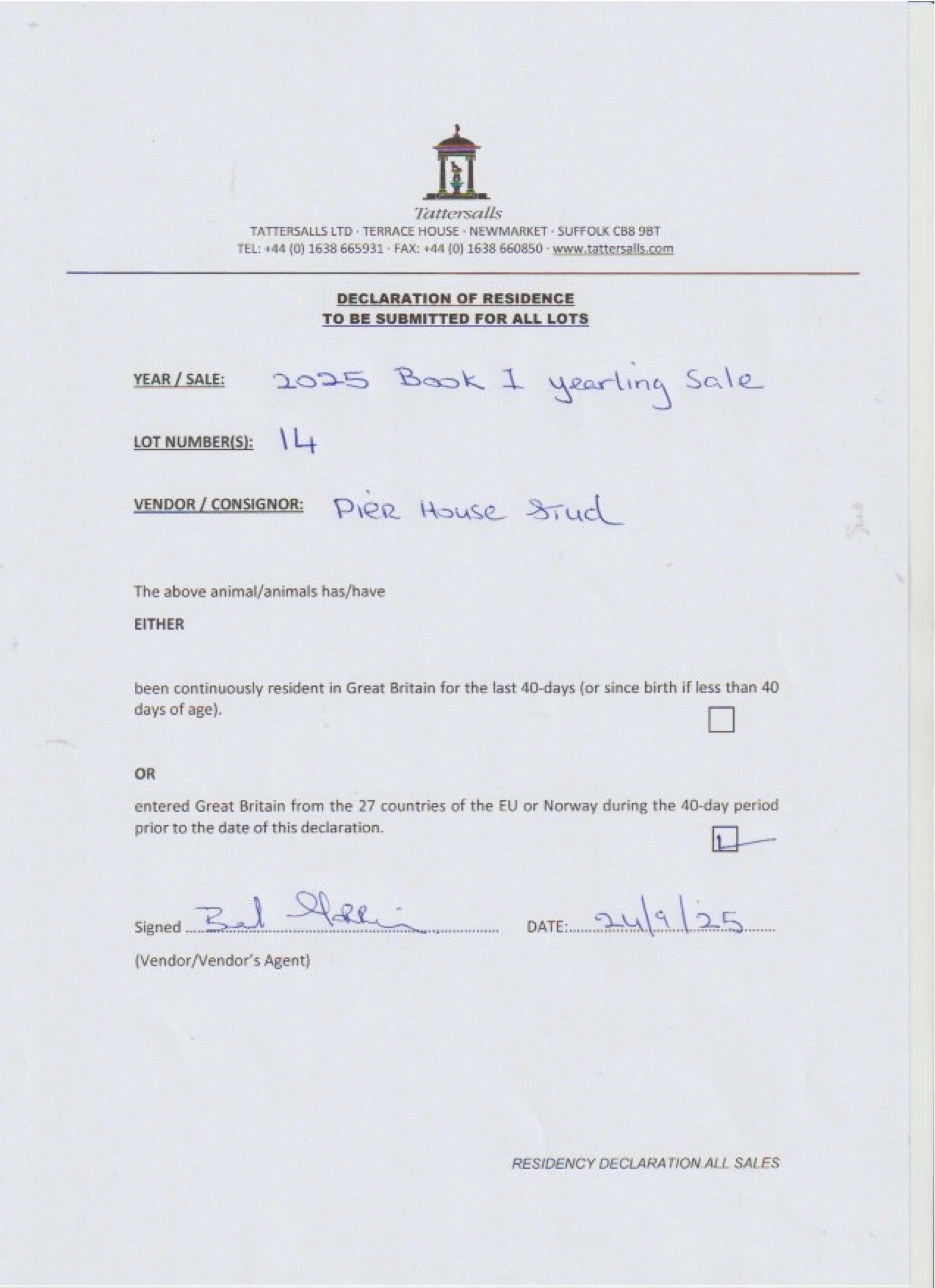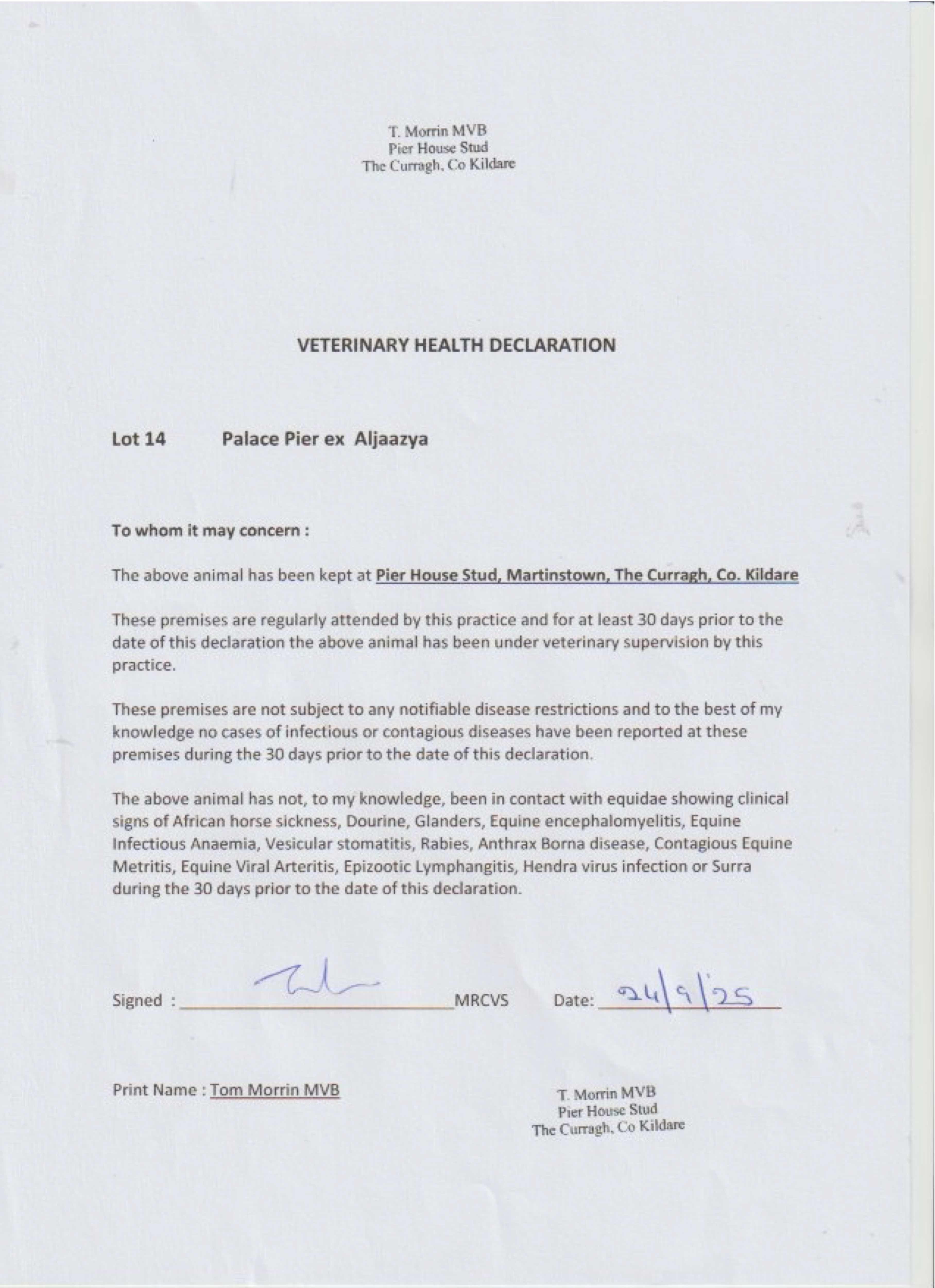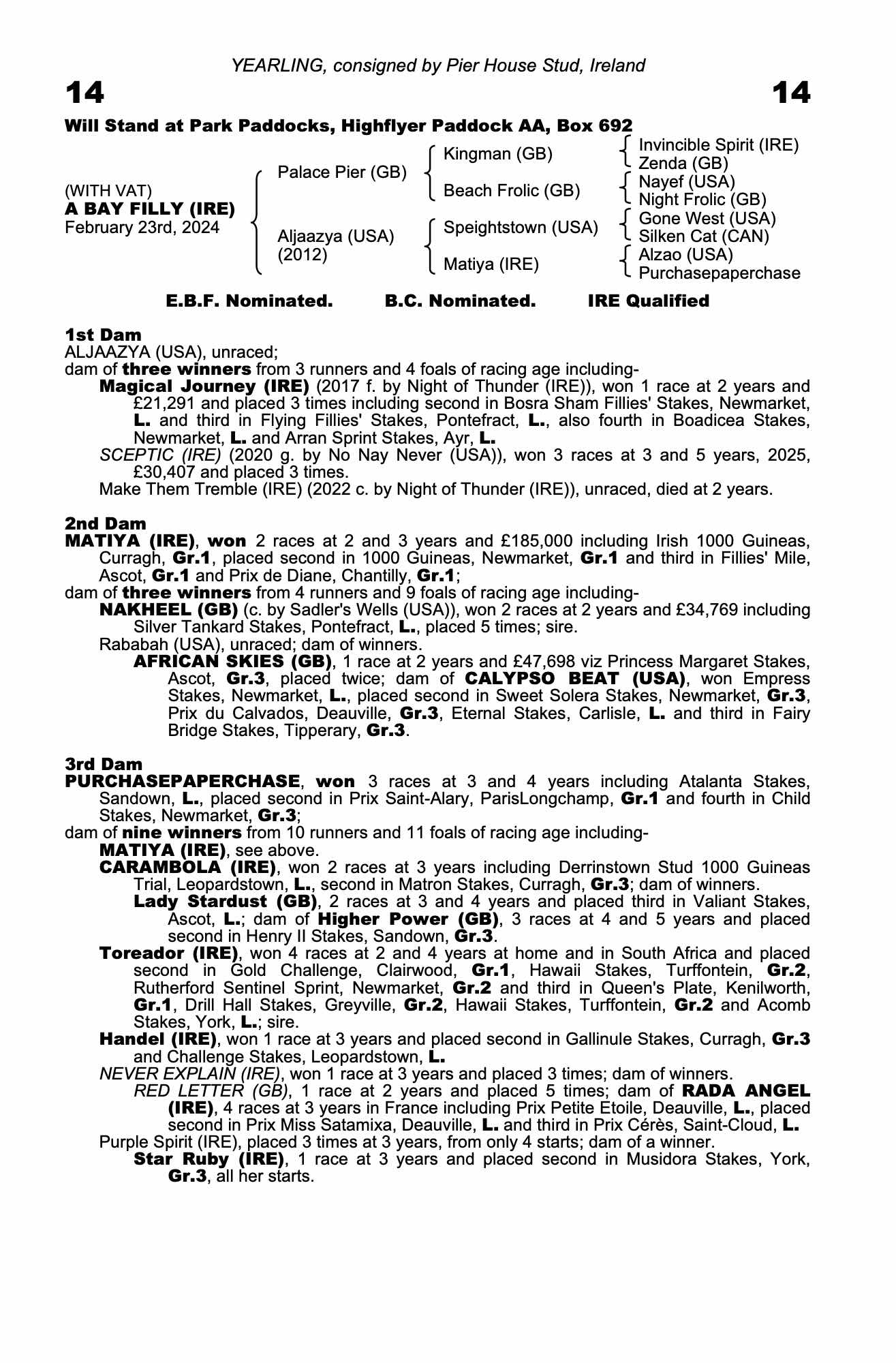 Consignor: Pier House Stud, Ireland