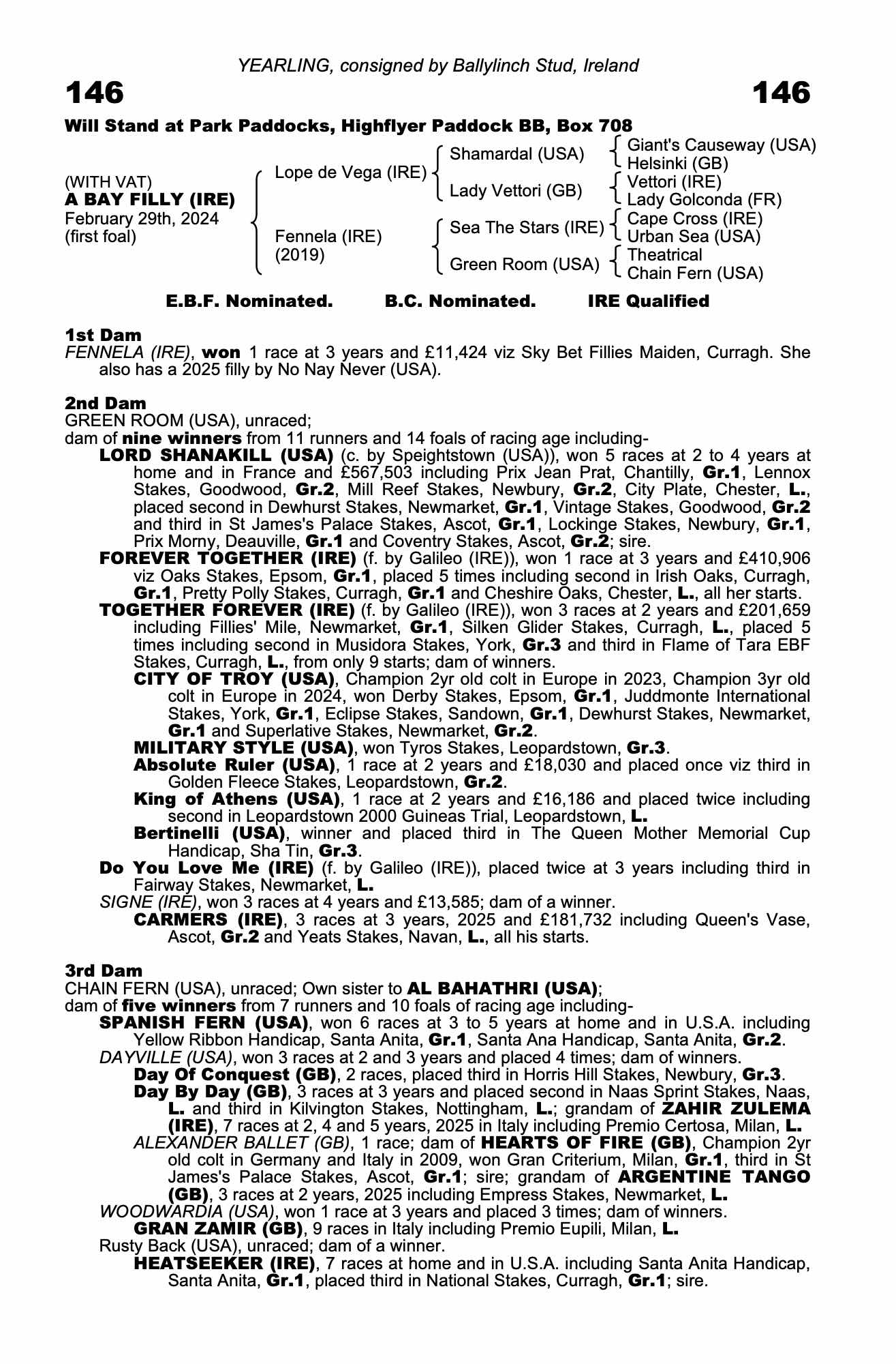 , placed once and £239,245 viz second in Great Voltigeur Stakes, York,
