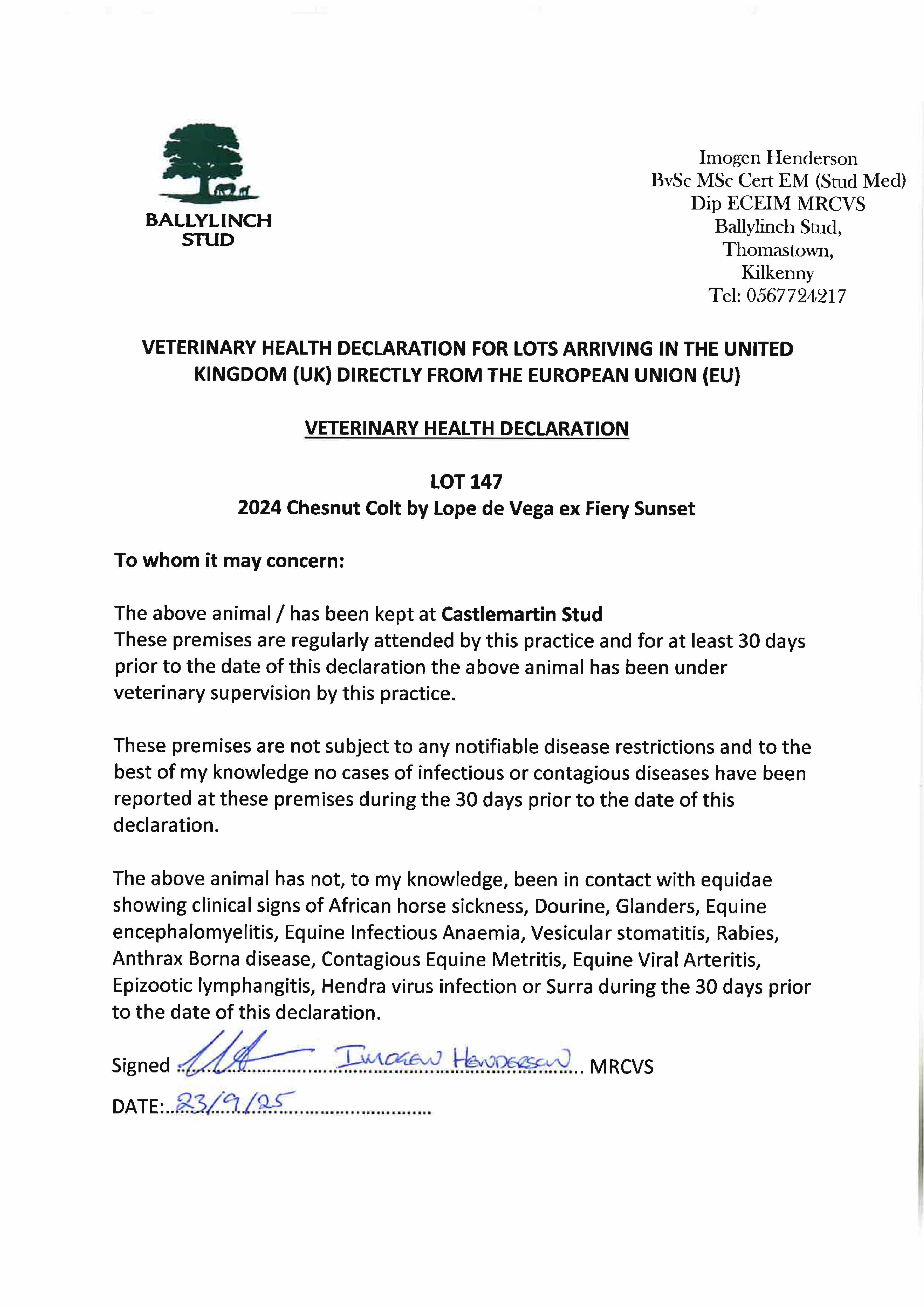 Consignor: Ballylinch Stud, Ireland