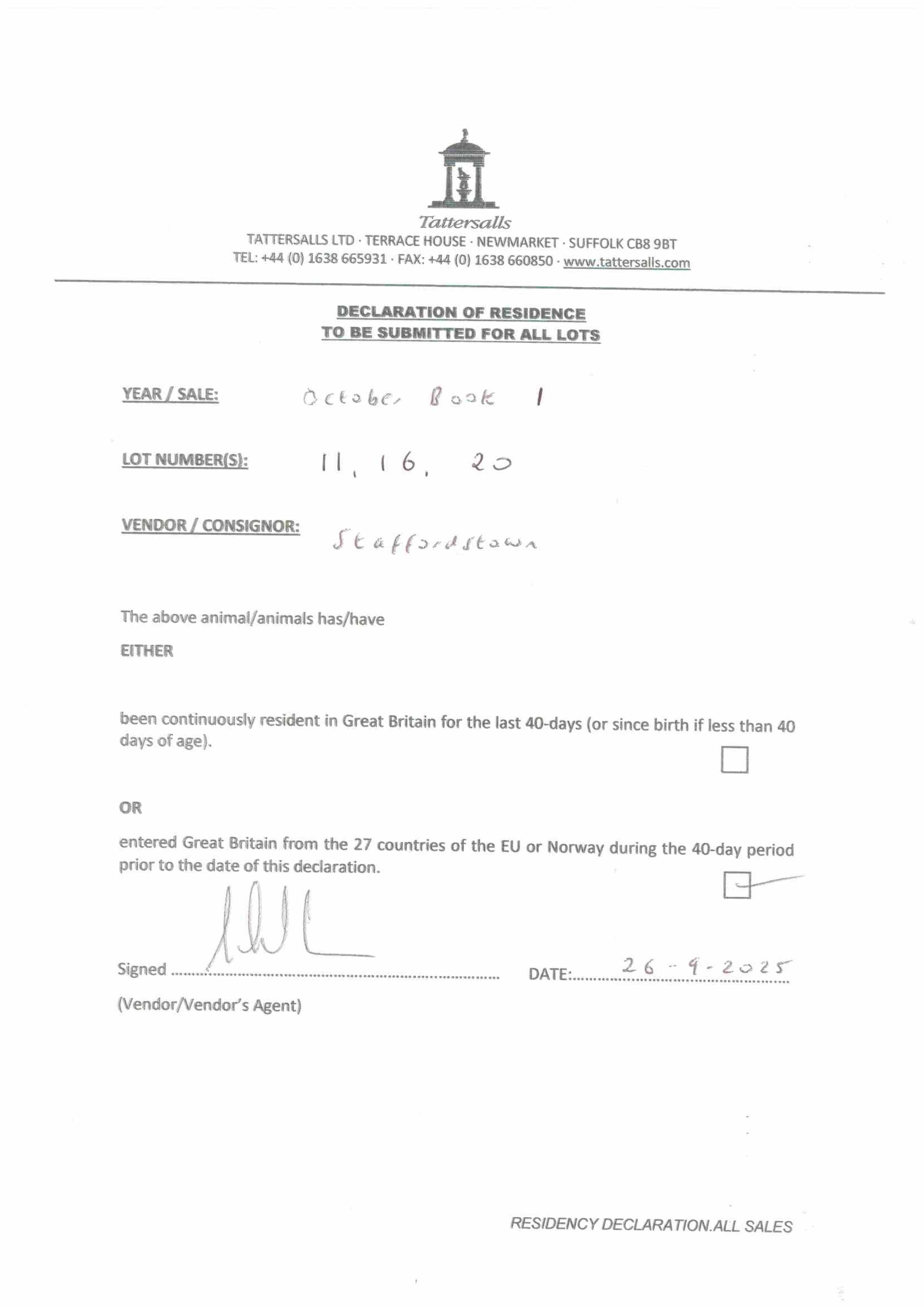 Consignor: Staffordstown, Ireland