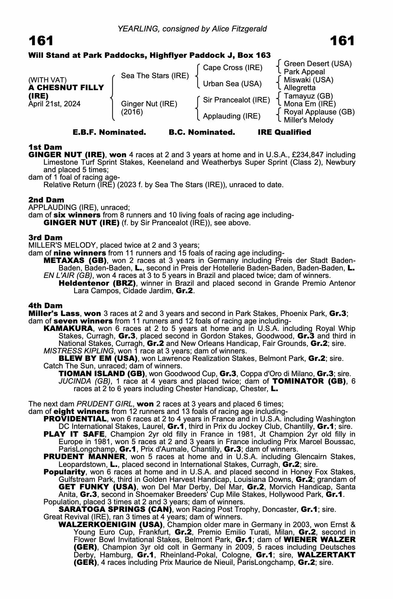 October Yearling Sale, Book 1 2024 lot 187 F. 2023, Alice Fitzgerald=>Klaravich Stables Inc., Mike Ryan Agent 300,000 gns