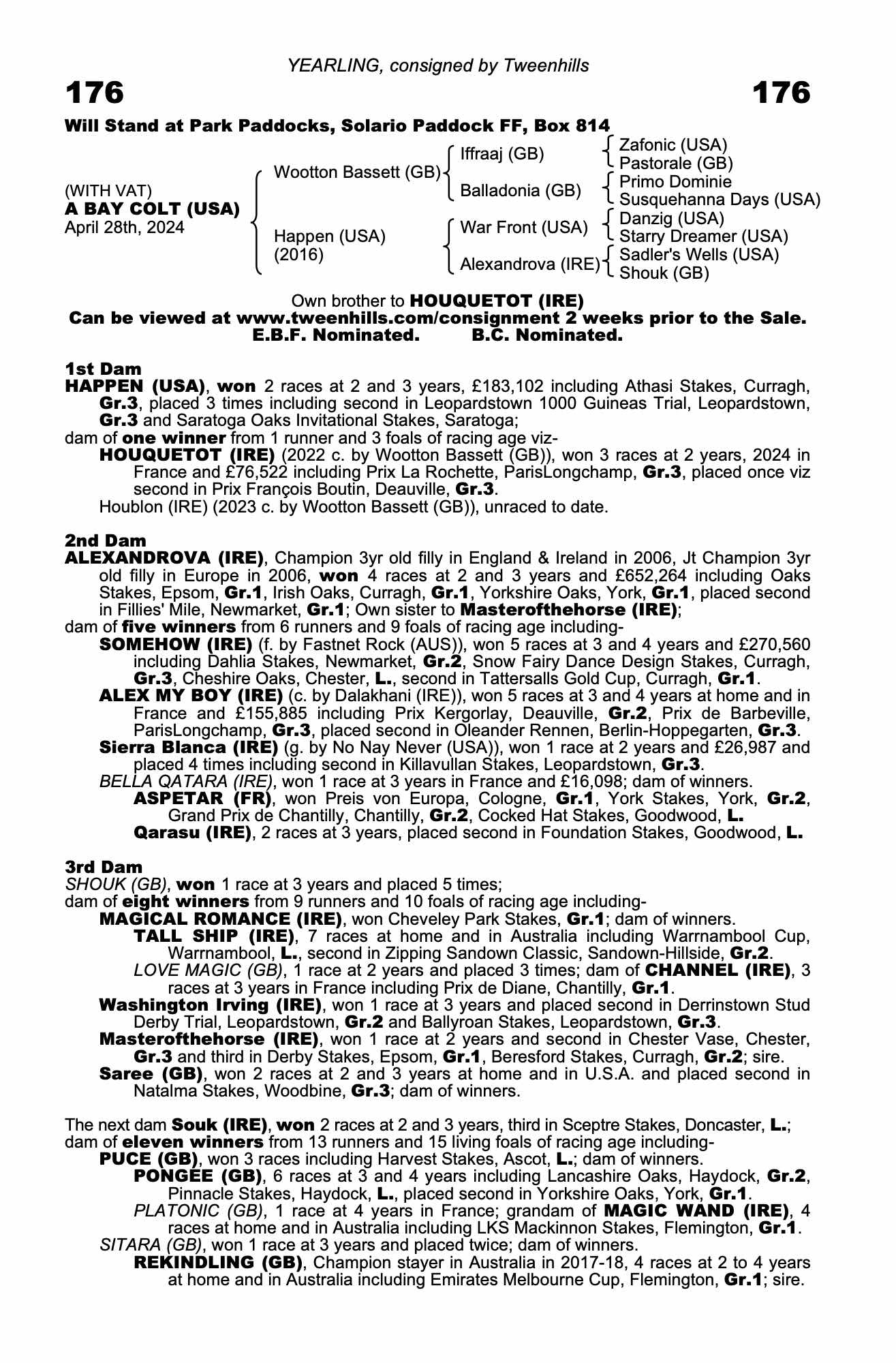 Own brother: Houblon (IRE) (2023 c. by Wootton Bassett (GB)), placed once at 2 years, 2025 in France, from only 2 starts.