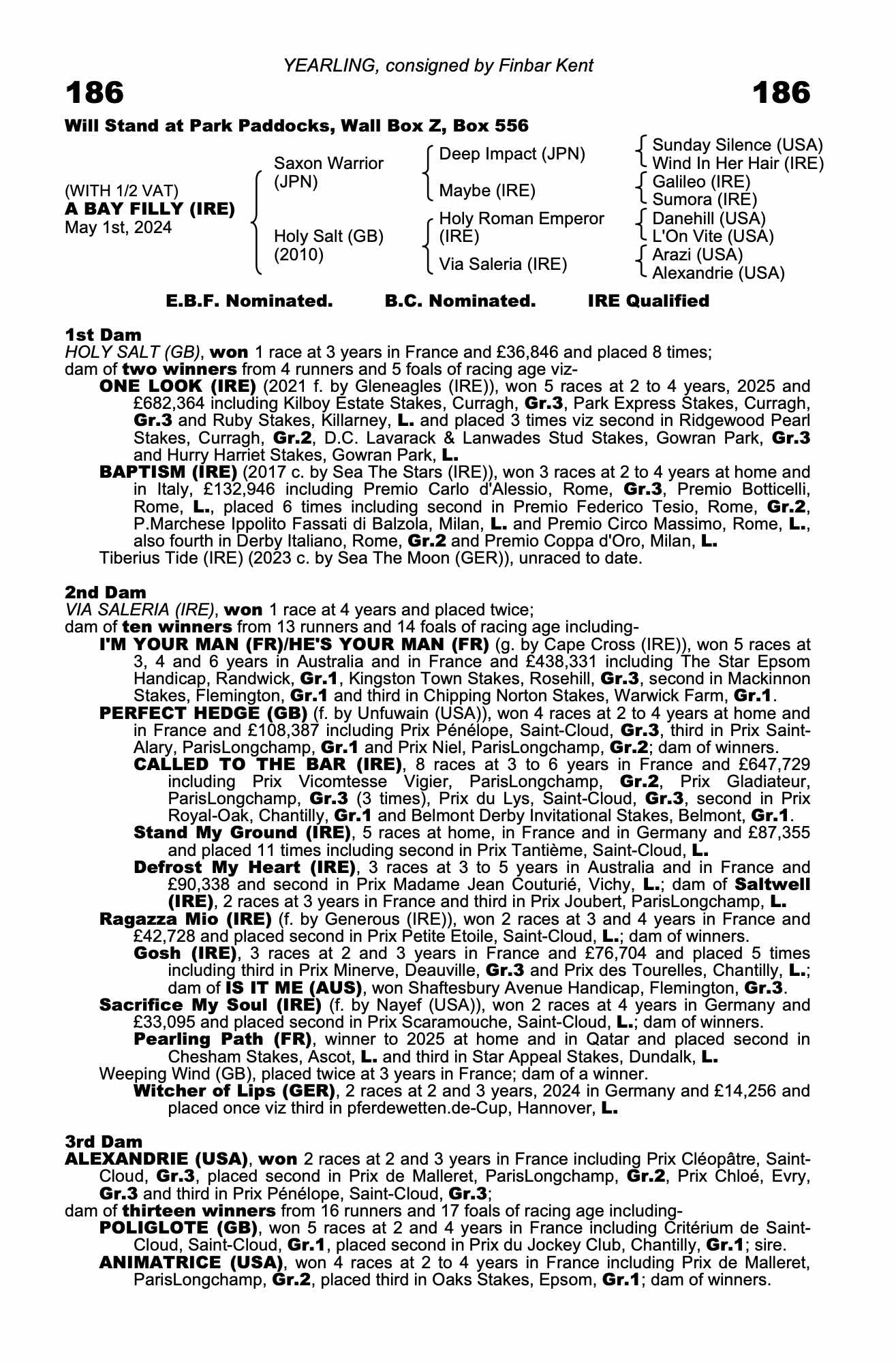 Lot 186 Saxon Warrior (JPN) /Holy Salt (GB) B.F. (IRE)
