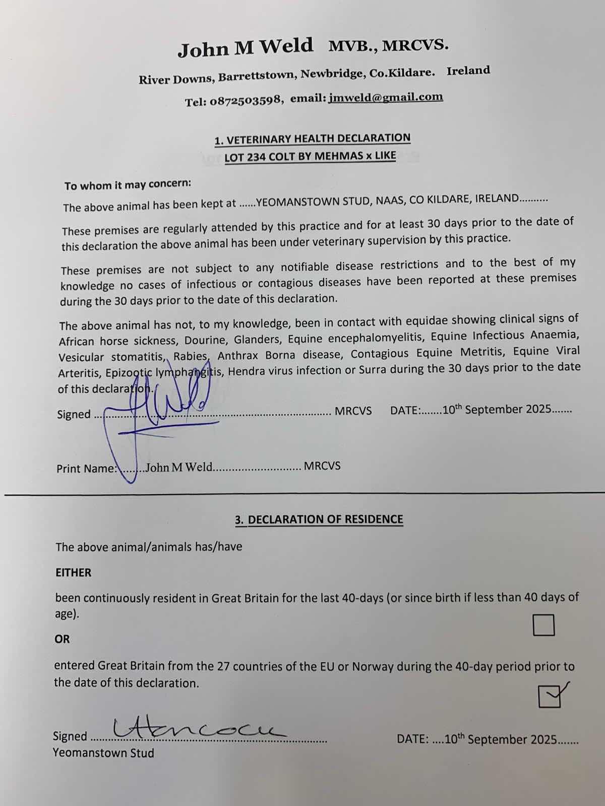 December Foal Sale 2024 lot 670, Plantation Stud=>Yeomanstown Stud 130,000 gns