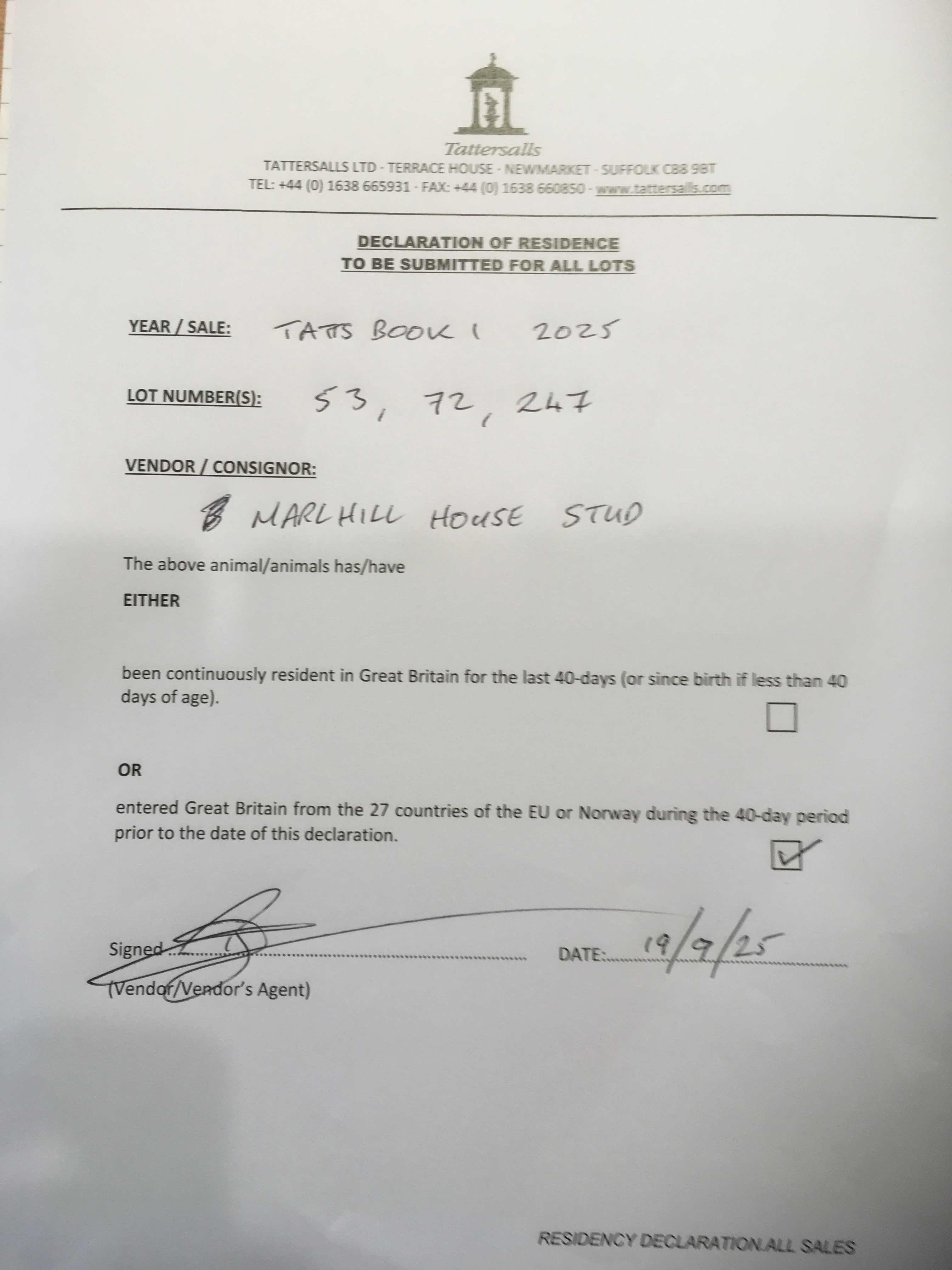 Consignor: Marlhill House Stud, Ireland