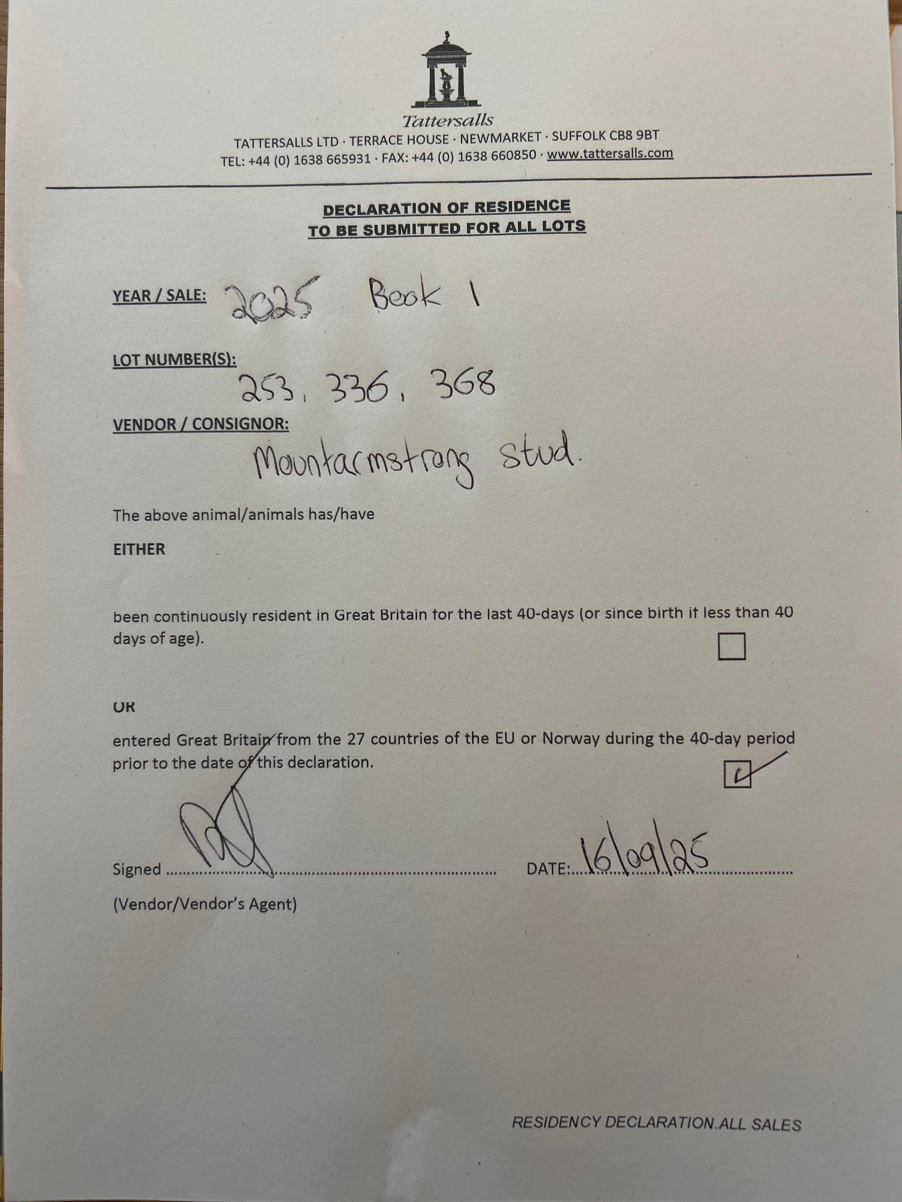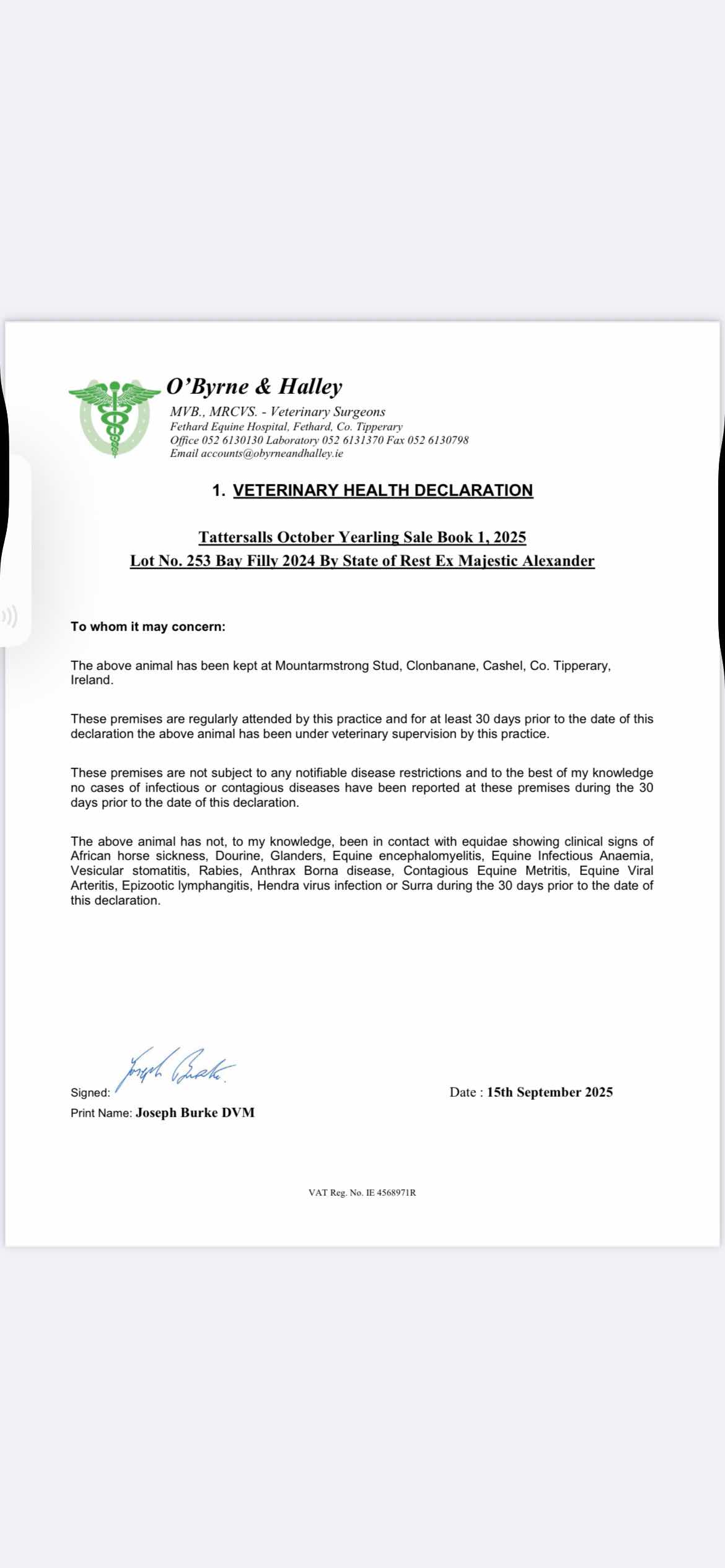 Consignor: Mountarmstrong Stud, Ireland