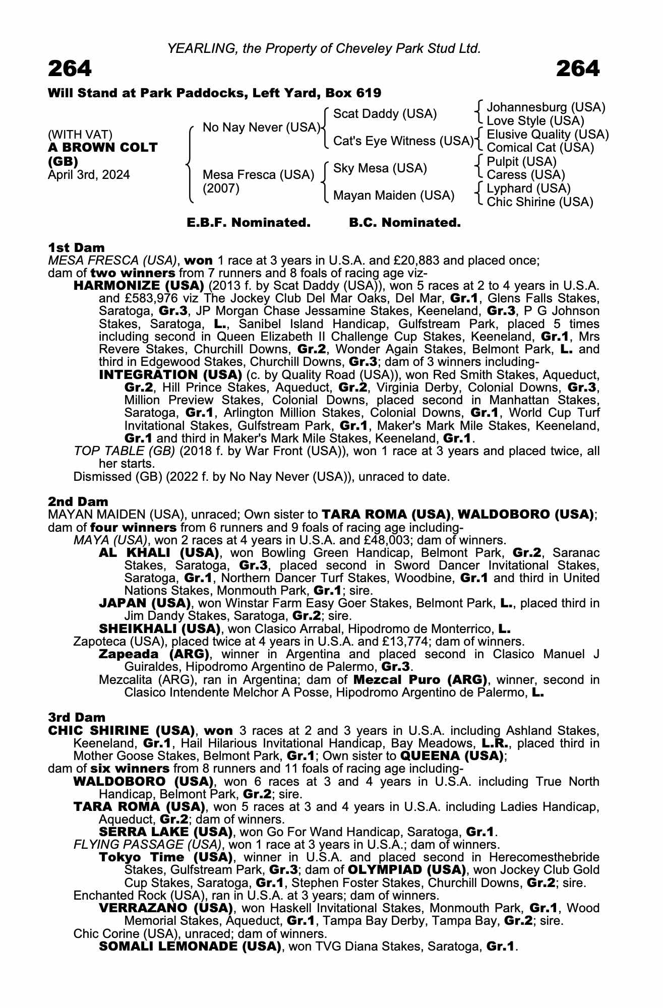 Lot 264 No Nay Never (USA) /Mesa Fresca (USA) Br.C. (GB)