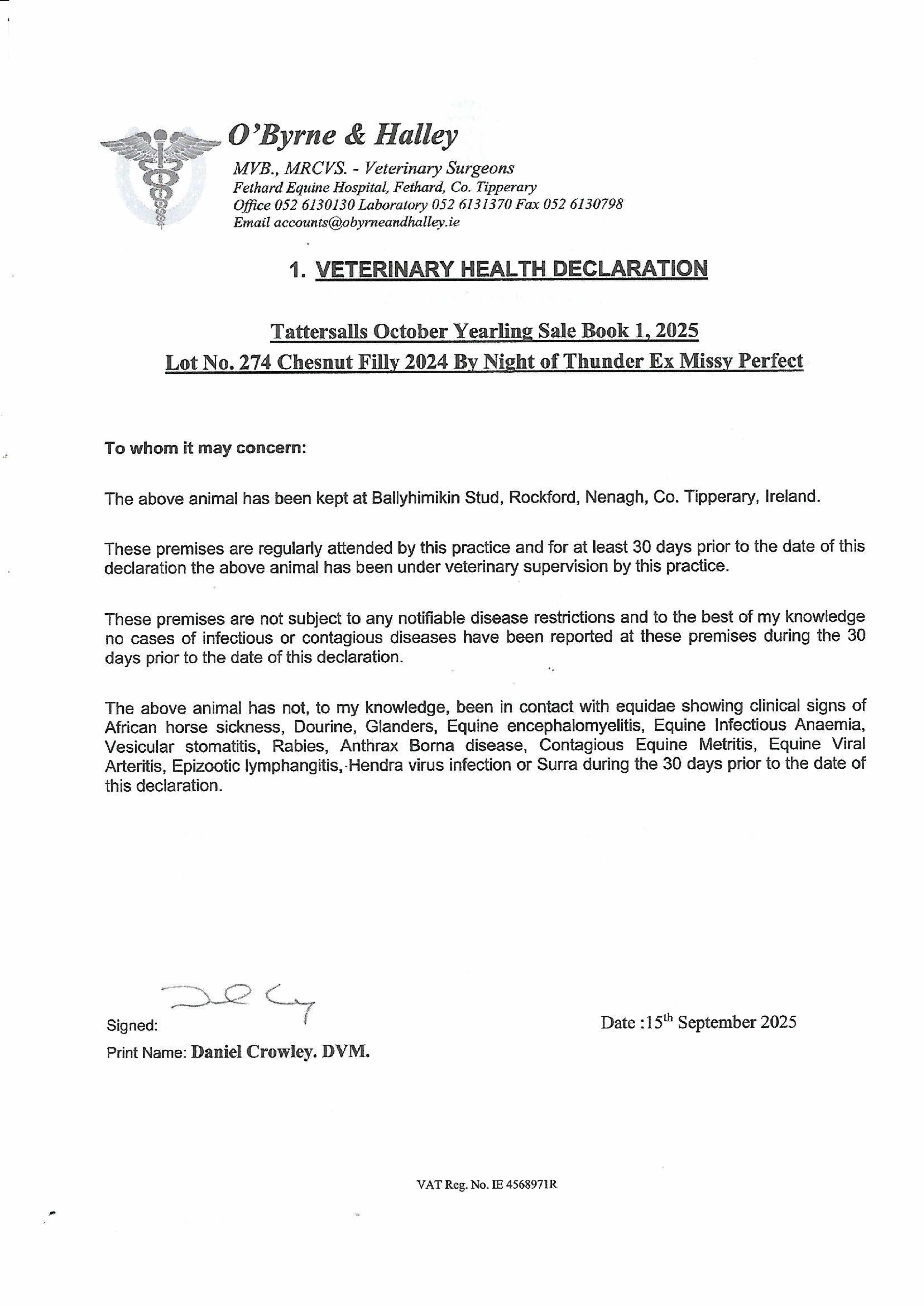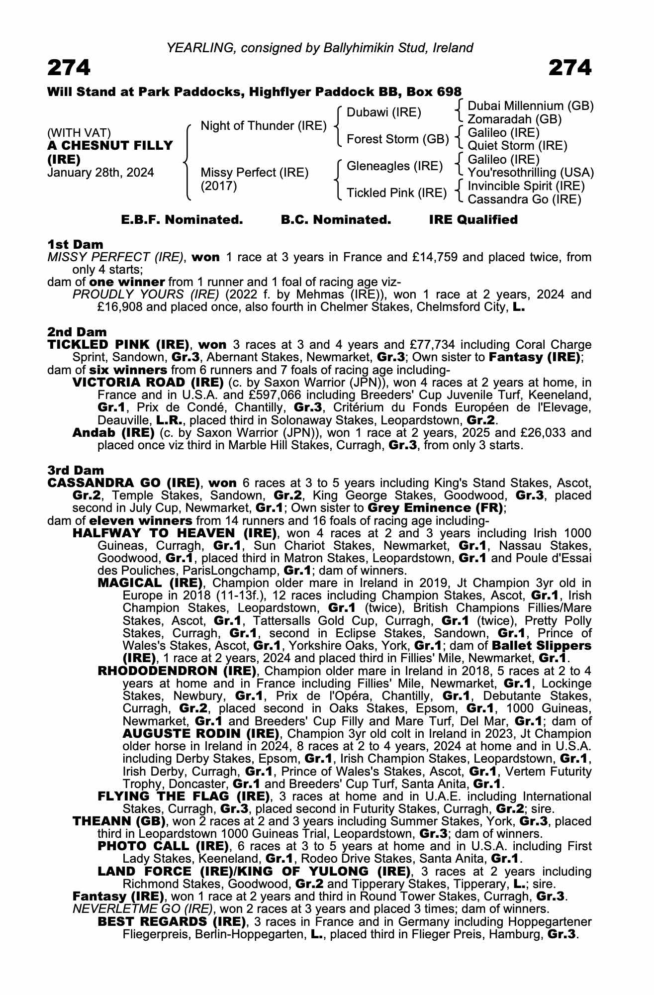 Lot 274 Night of Thunder (IRE) /Missy Perfect (IRE) Ch.F. (IRE)