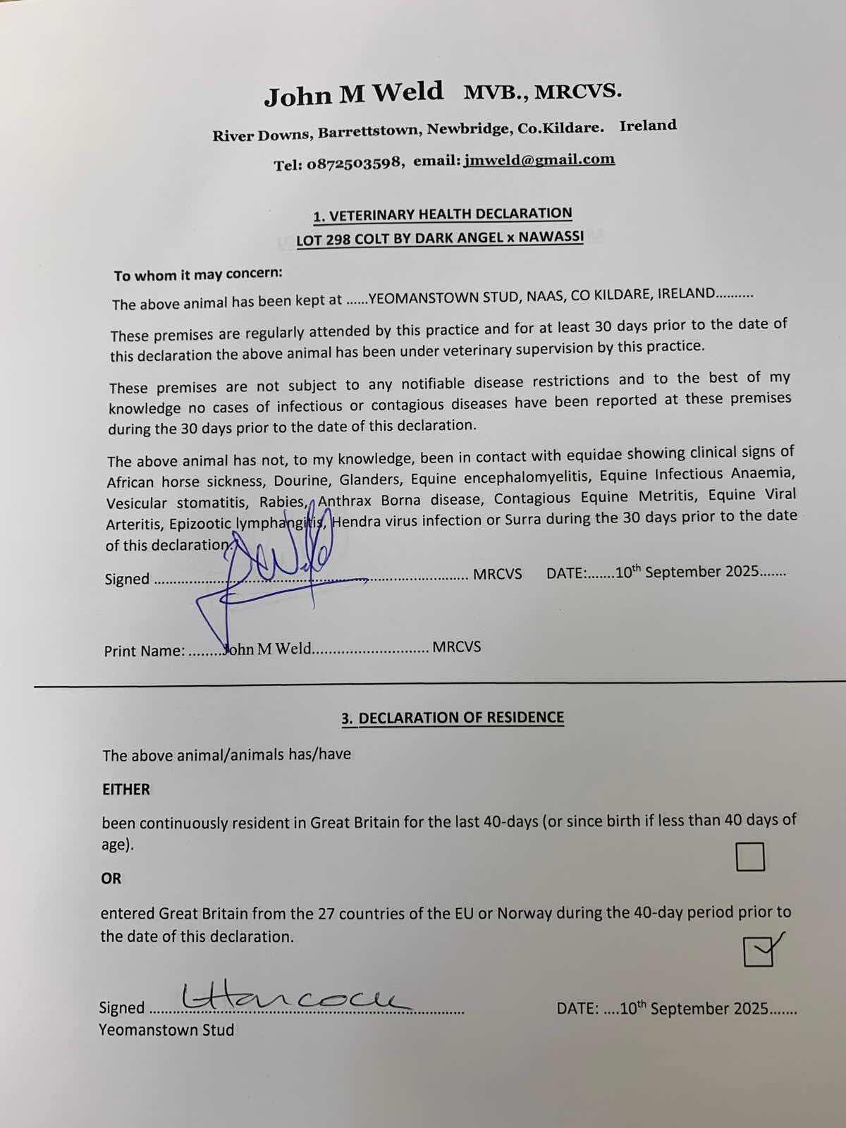 Consignor: Yeomanstown Stud, Ireland