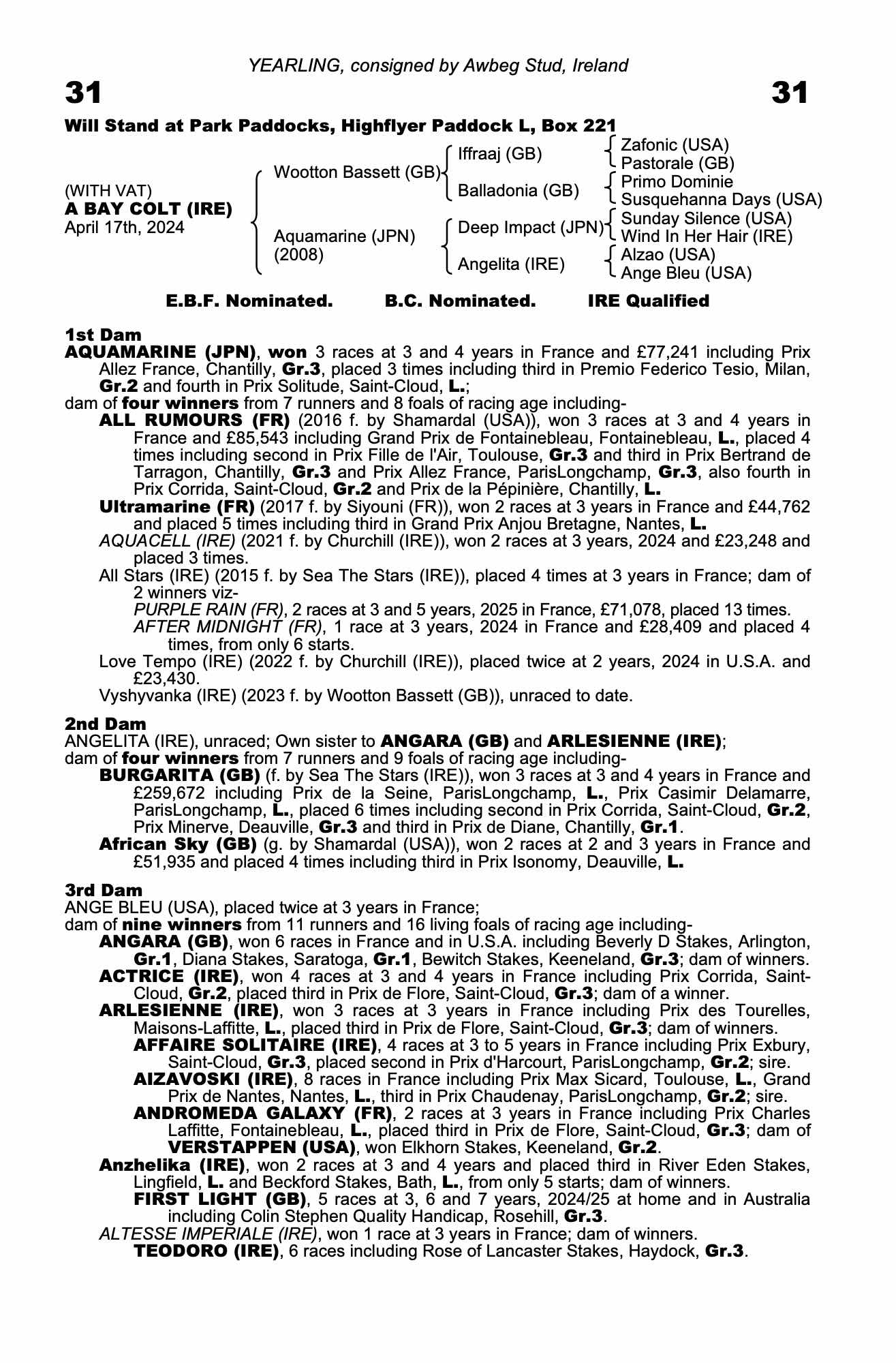 Lot 31 Wootton Bassett (GB) /Aquamarine (JPN) B.C. (IRE)