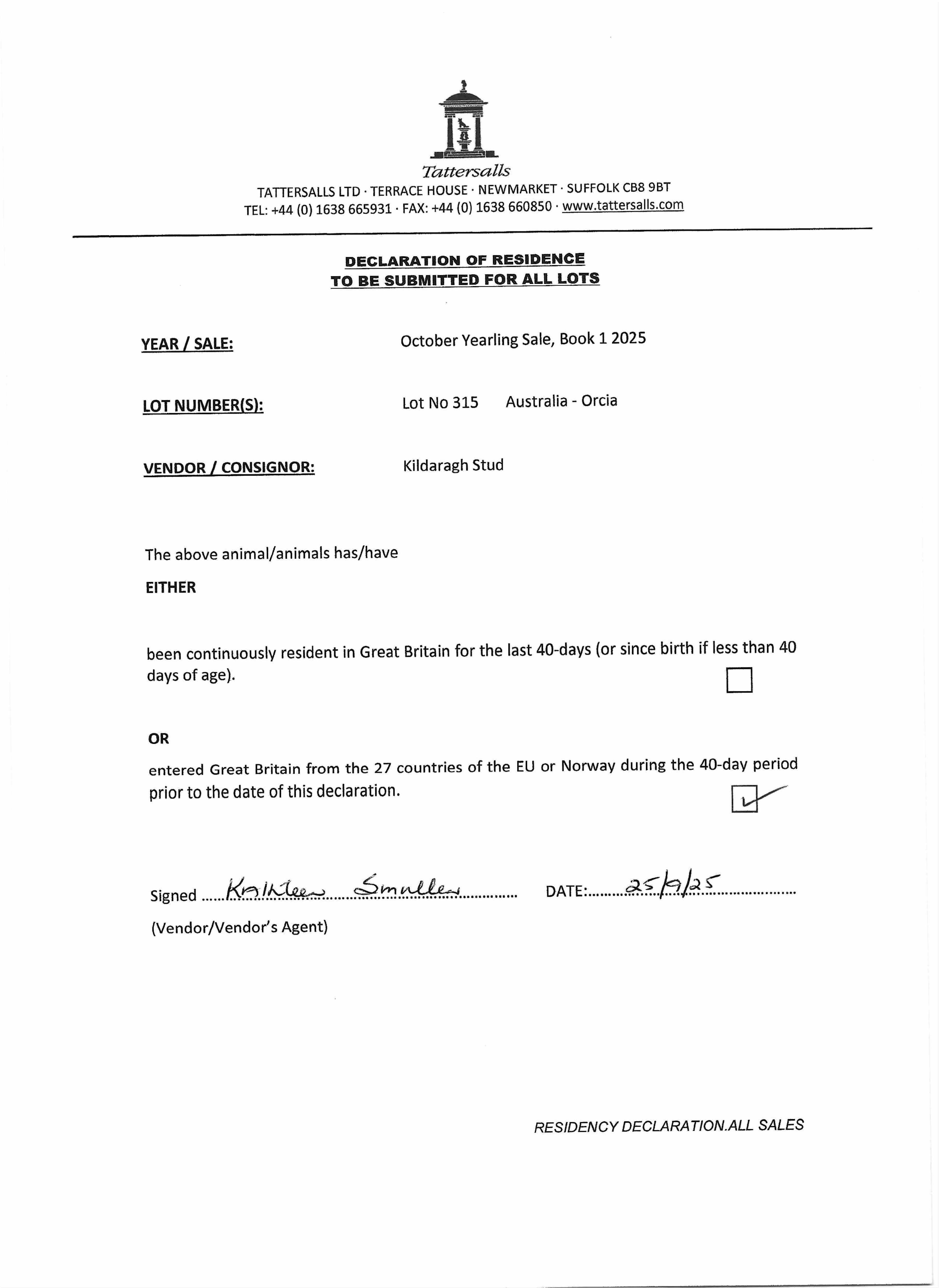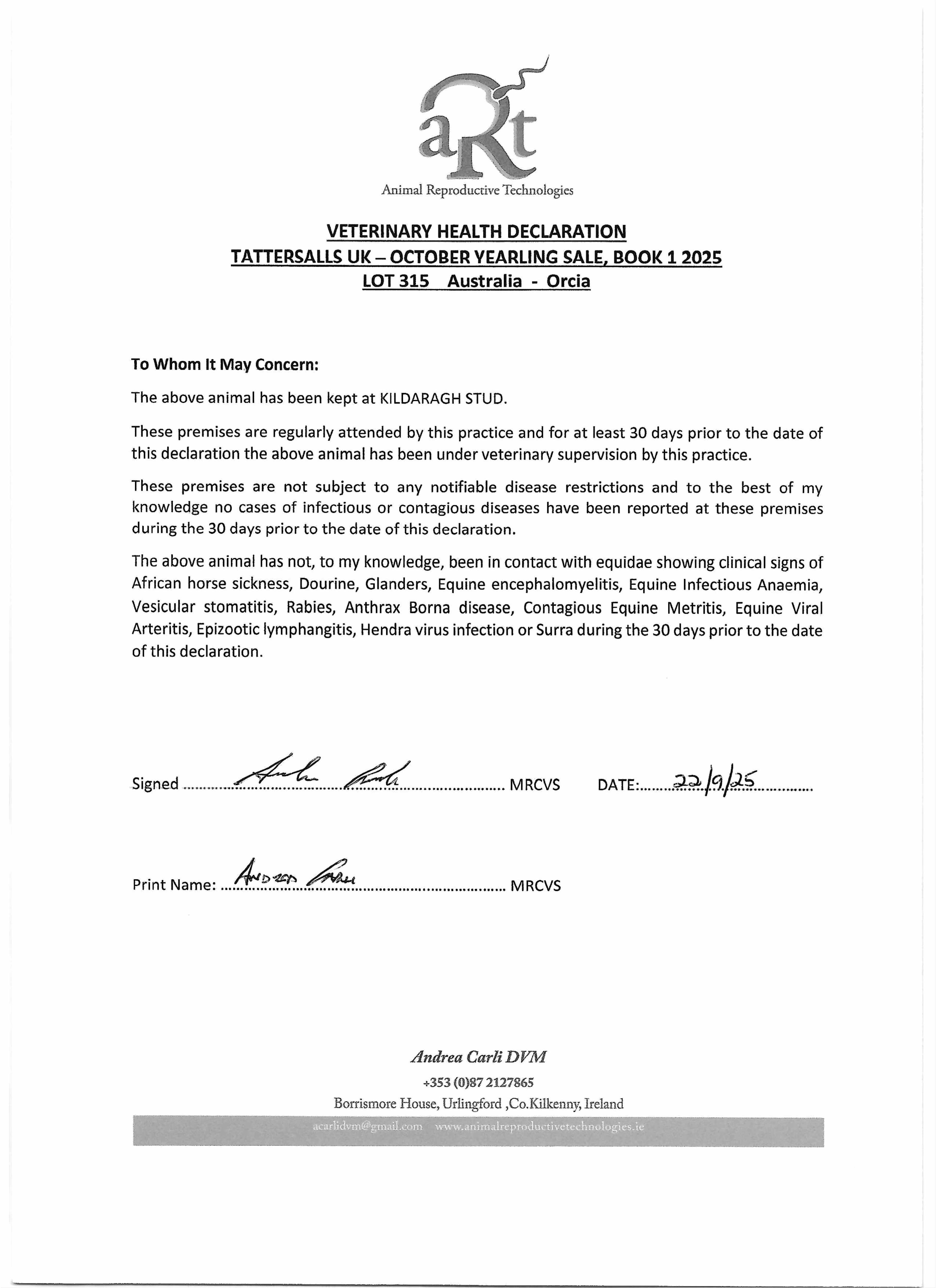 Consignor: Kildaragh Stud, Ireland
